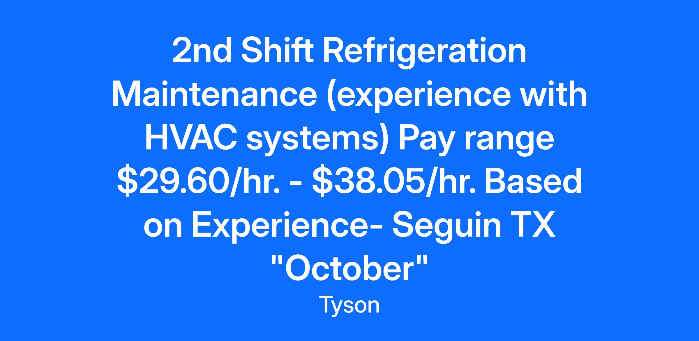 Knowledge/ experience with HVAC systems. Also, maintenance education or experience.Must have six(6) months of industrial Maintenance experience.