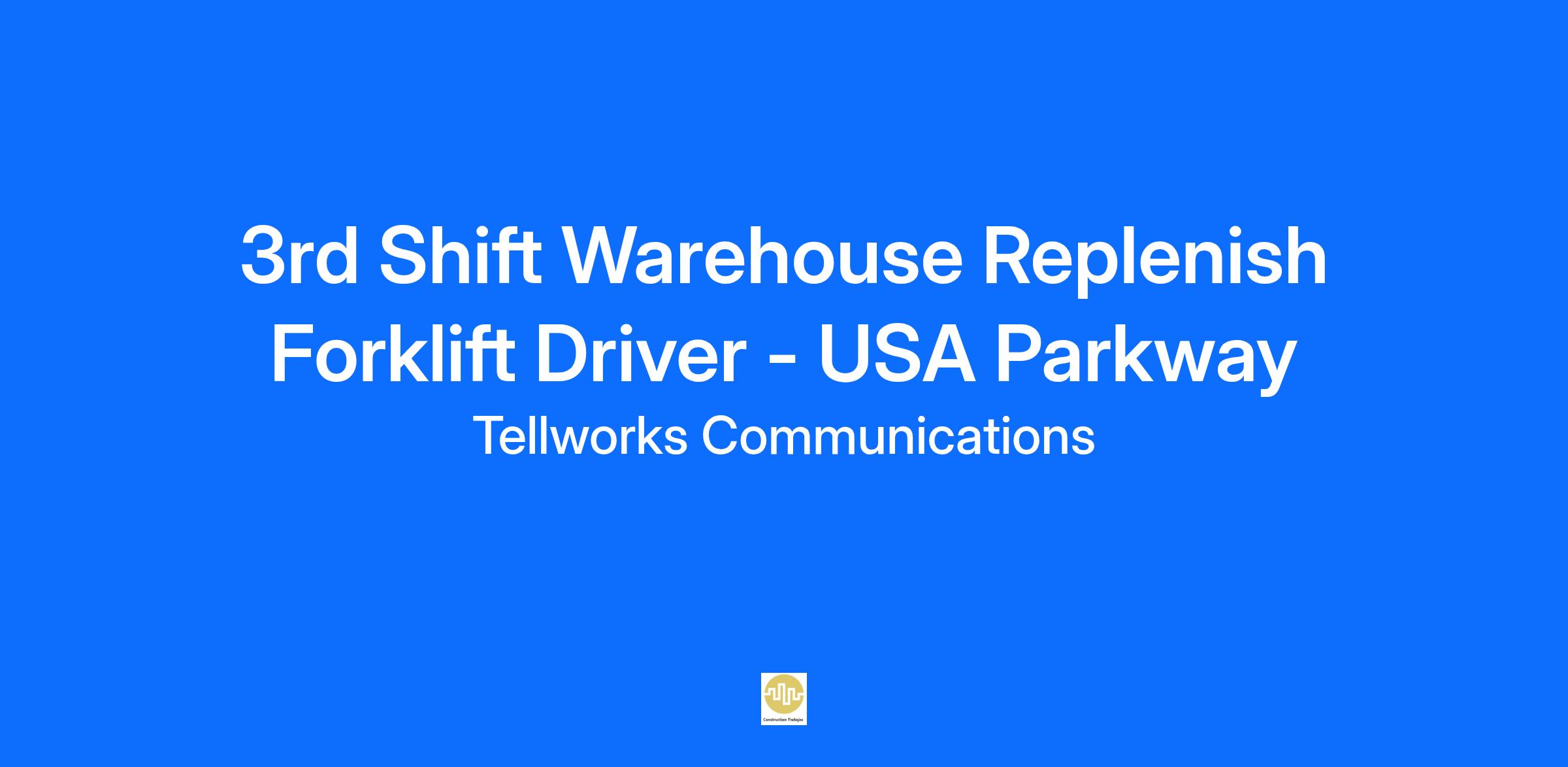 Tellworks, a growing 3PL provider, is currently seeking forklift drivers for an opening in our USA Parkway location.