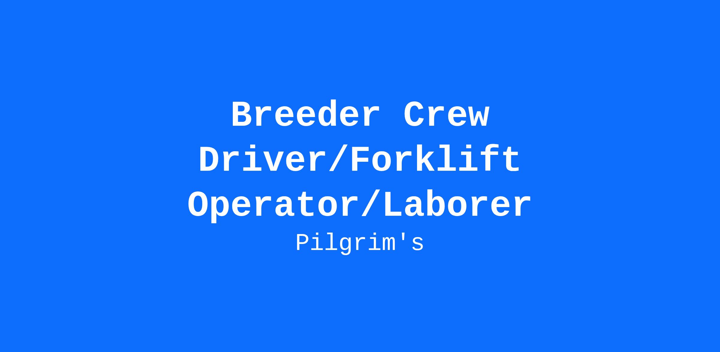 Pilgrim’s wants YOU to join our Team as an BREEDER CREW DRIVER! This position starts at $26.06/hour plus offers a $4/hour perfect attendance bonus that is paid out weekly