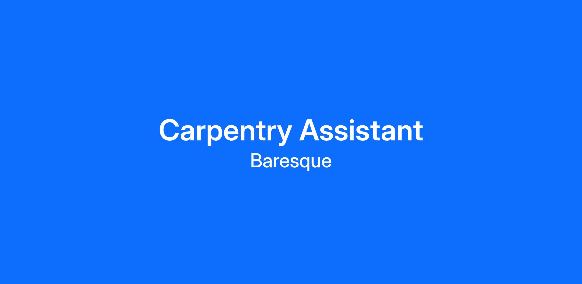 We are seeking a Carpentery Assistant with a strong understanding of capentitry and building furniture with an attention to detail.