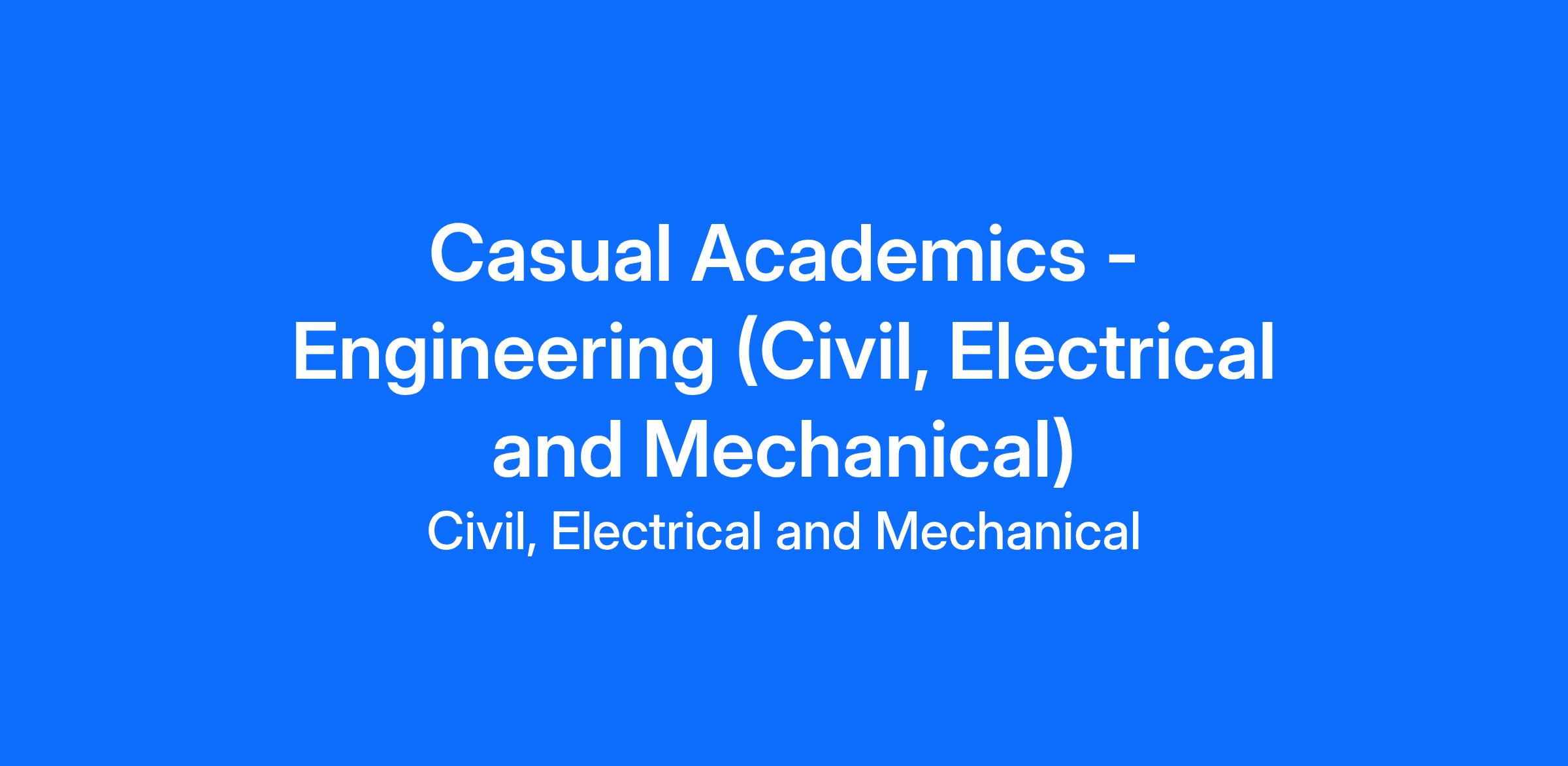 We are seeking expressions of interest from suitably qualified individuals in the Engineering discipline to register as Casual Academics to undertake casual lecturing, tutoring and/or assessment marking in our Engineering program.