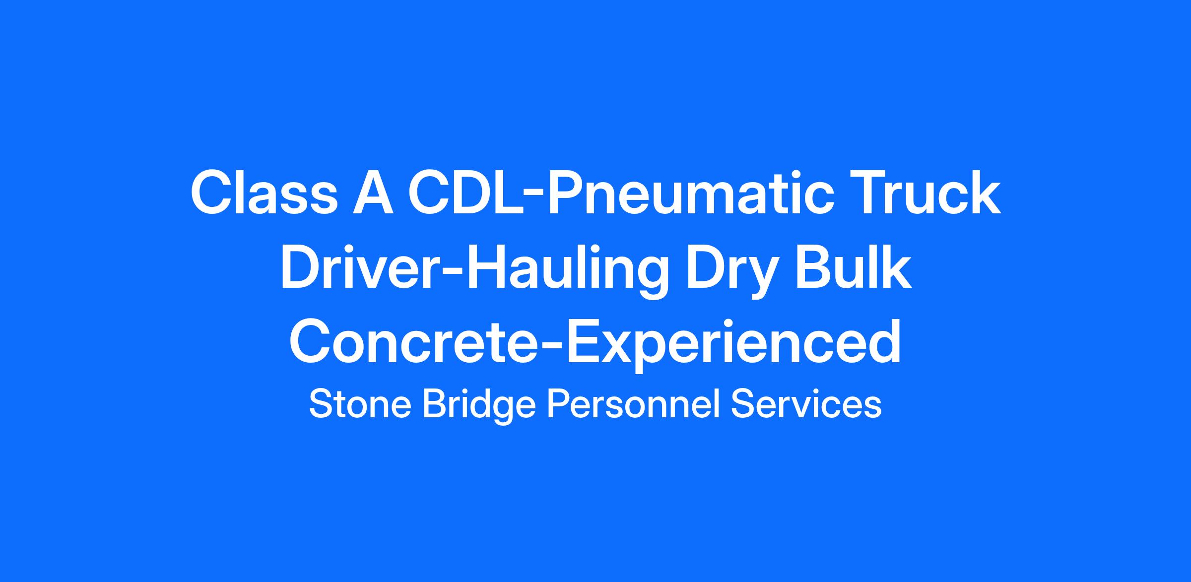 Class A CDL-Pneumatic Truck Driver-Hauling Dry Bulk Concrete-Experienced