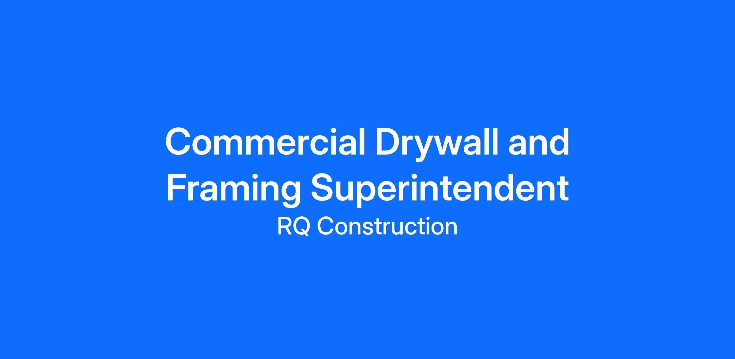 RQ is a national Design-Build contractor with nearly $300M in active commercial and Department of Defense projects. We are seeking an experienced Commercial Framing & Drywall Superintendent to support our Self-Perform Building Trades team across the Southeast.