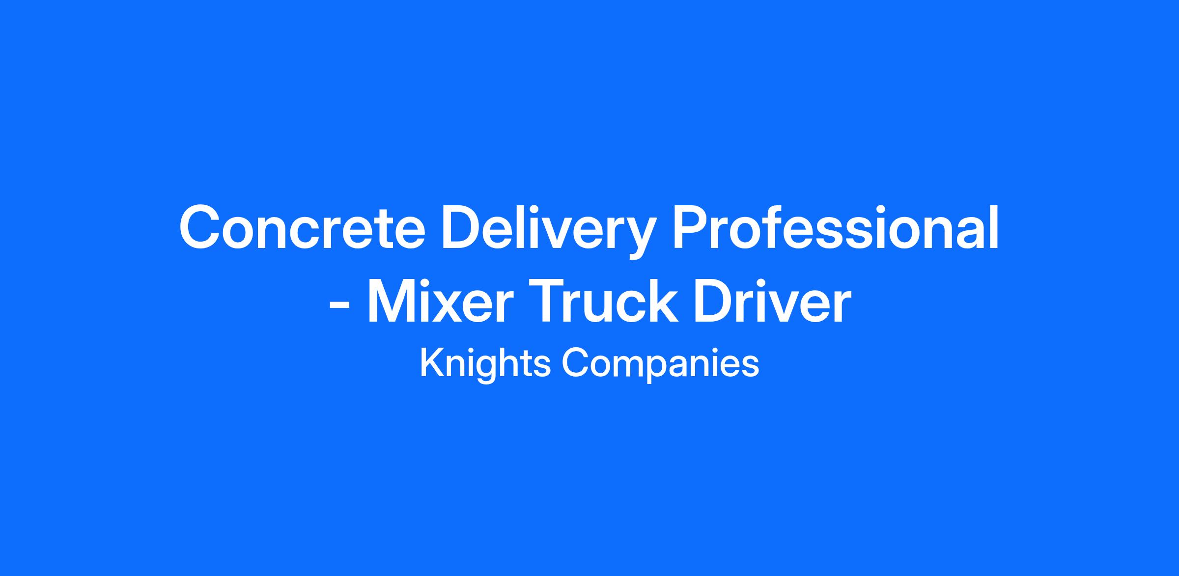 The Concrete Delivery Professional is responsible for the safe and efficient operation of a ready-mix truck used for the delivery of products connected to the Company’s ready-mixed concrete operation and to represent the Company’s values and portray a positive image (attitude, attire, cleanliness, etc.) always. In addition to the operation of a concrete mixer truck, a delivery professional is expected to be an active member of their plant/area team and work in conjunction with plant management to attain plant/area level goals.