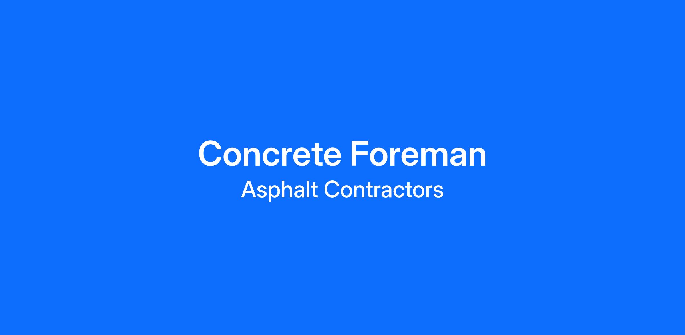 Asphalt Contractors, Inc., a second-generation, family-owned company with 45 years of experience, is seeking an experienced Concrete Foreman to join our team. We are a full-service contractor delivering high-quality concrete and asphalt solutions throughout the region.