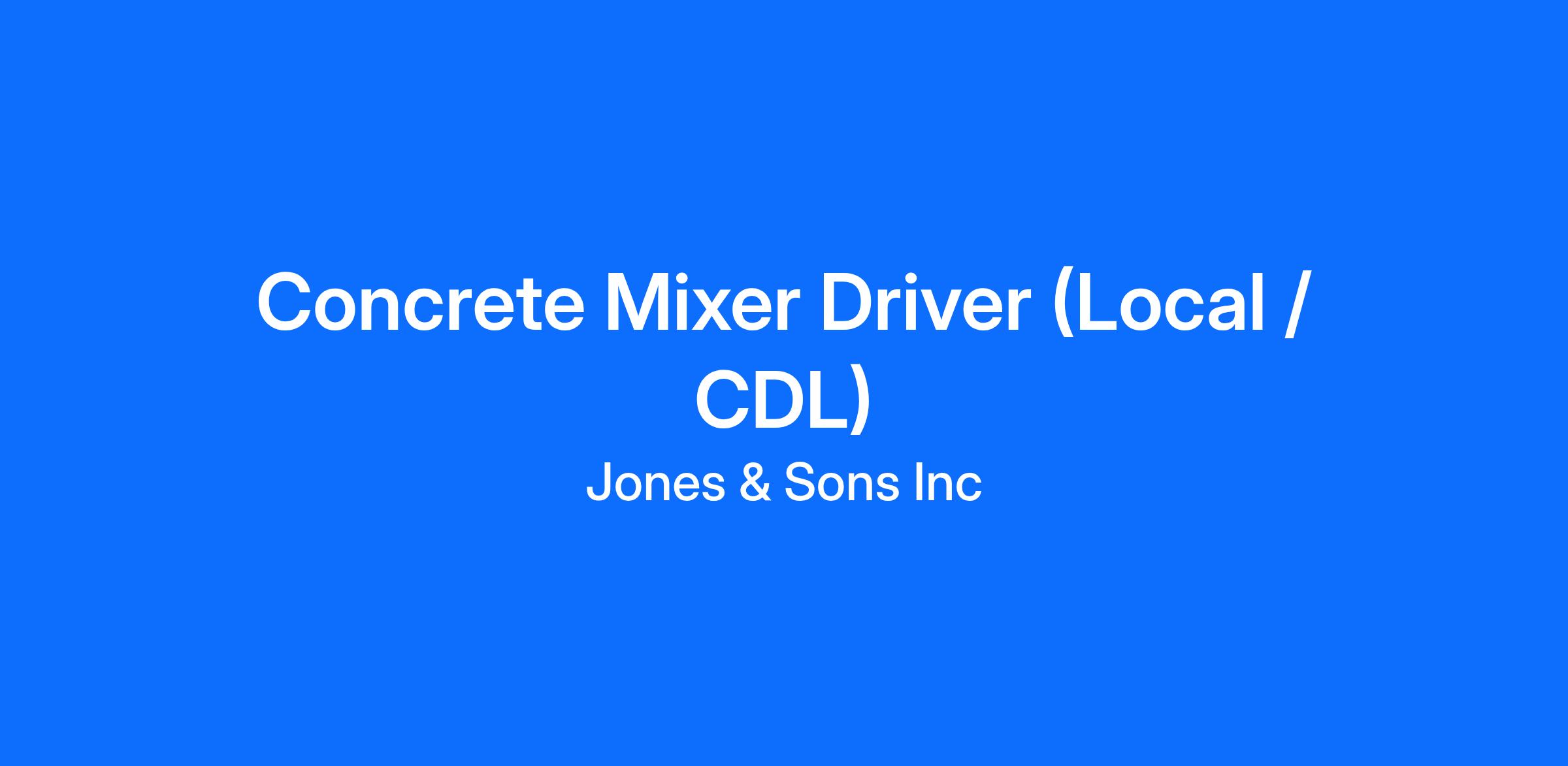 Jones & Sons is looking to hire Concrete Mixer Drivers at our Terre Haute, IN location. Started in 1971, we are a family owned and operated business with locations in Bloomfield, Clinton, Linton, Terre Haute, Vincennes and Washington, IN. Our core activities include Ready Mixed Concrete, Block, Brick, Precast Concrete, and Aggregates servicing Southwest Indiana.