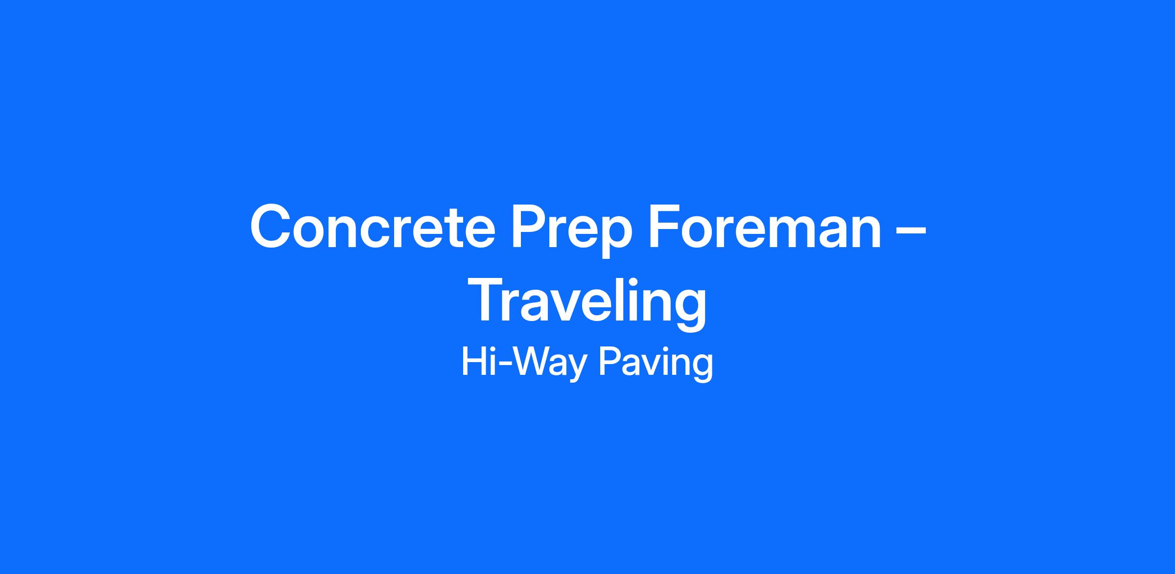 In addition to hands-on work, the Prep Foreman will supervise a crew of operators and laborers, oversee equipment use and maintenance, manage daily production goals, and maintain schedule requirements. This role works closely with Hi-Way’s job-site leadership to review plans, procedures, and progress, ensuring quality and efficiency across the board.