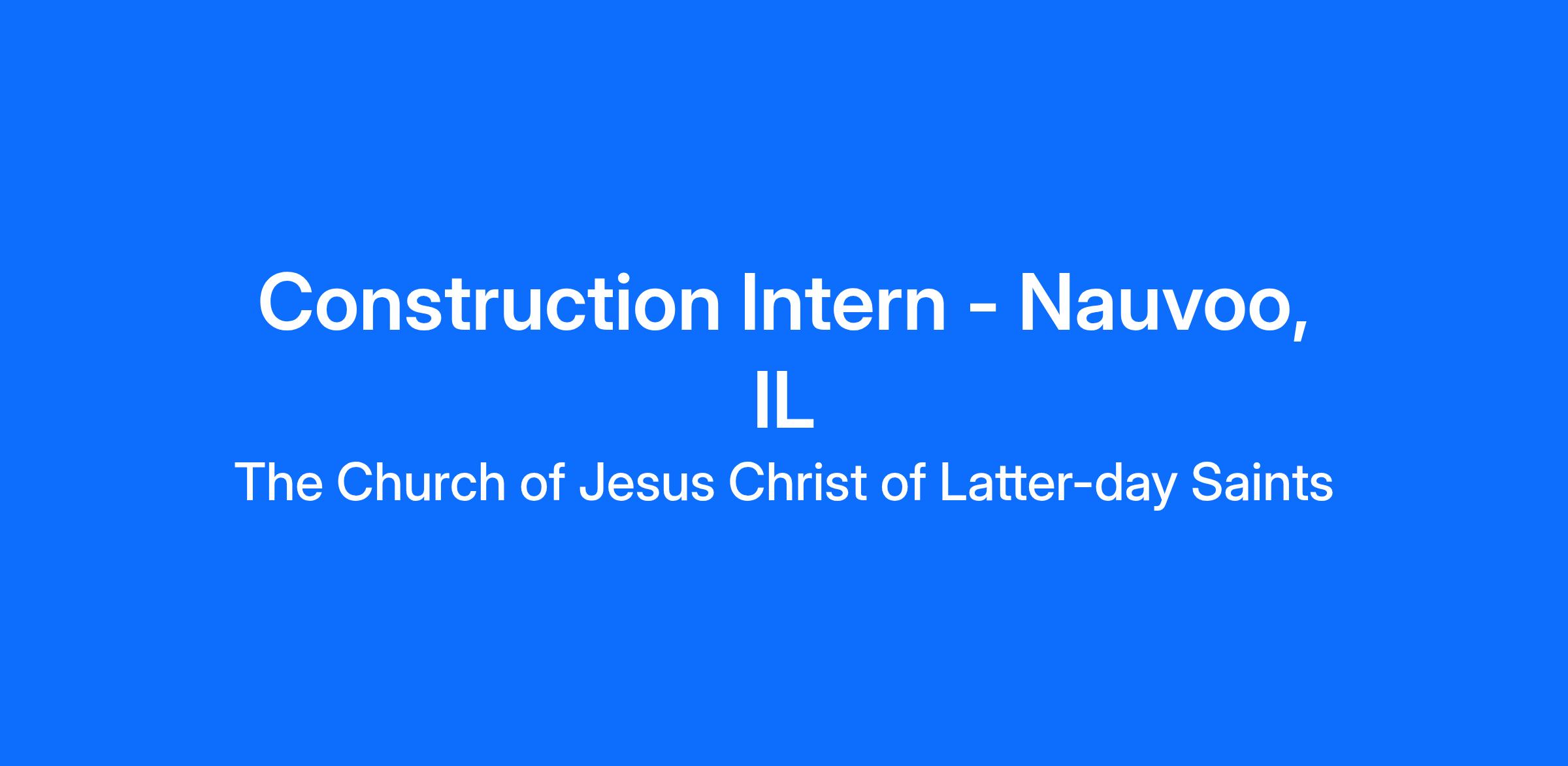 DescriptionThe Construction Intern supports the Nauvoo Facilities and Construction team by assisting with a variety of construction, repair, and maintenance activities on historic and modern structures. This role works under the direction of skilled trades personnel, helping with basic construction tasks, operating tools and equipment as assigned, and maintaining safe, clean, and organized work areas. The position requires physical stamina, dependability, and a willingness to learn and follow established instructions and safety procedures.