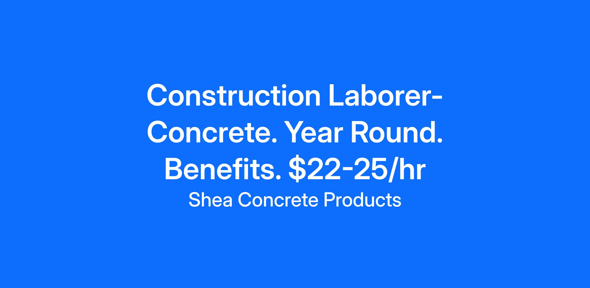 Start a new career with Shea Concrete at our brand new 22,000 sq foot precast plant located in Nottingham, NH. Be proud of what you do knowing you are a part of building concrete products for society on a daily basis. Year-round work with benefits. Monday through Friday schedule. $22/hr to $25/hr based on experience.