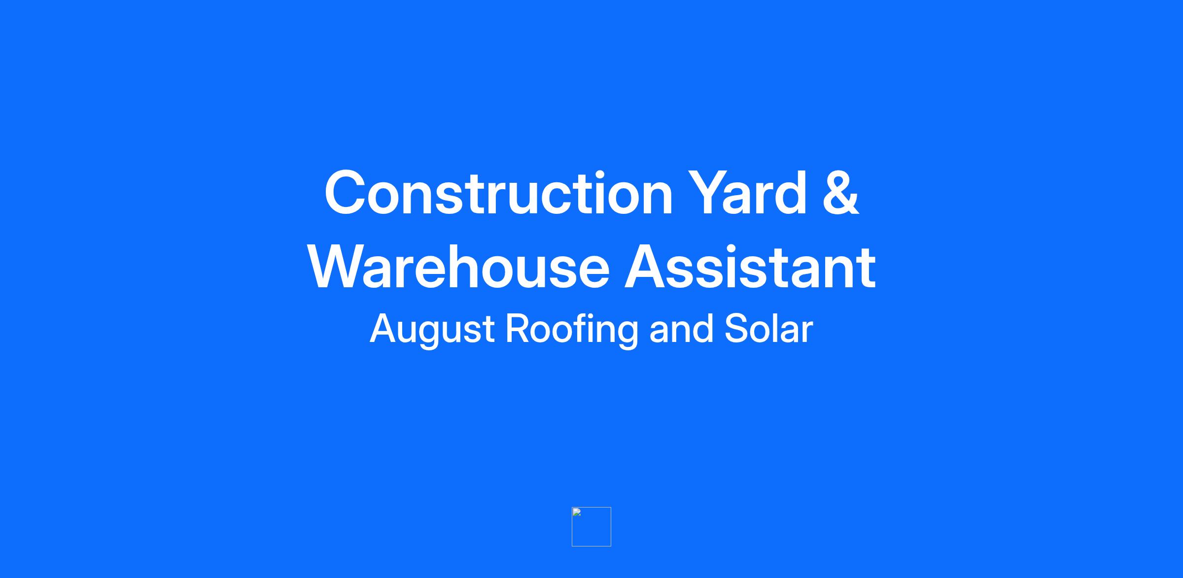 As a Warehouse and Yard Attendant at August Roofing and Solar, you will be a vital member of our production team, responsible for maintaining the yard and warehouse operations. If you enjoy working outdoors, are mechanically inclined and have experience in yard and/or warehouse environment, we want to hear from you! This is a fulltime position with a Monday to Friday 8:00 AM to 5:00 PM work Schedule.