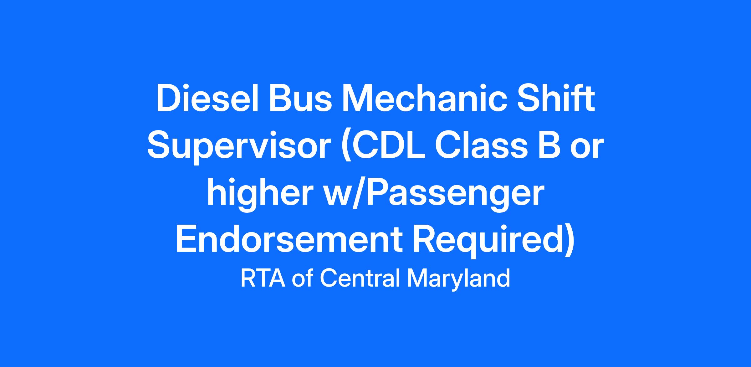 The RTA is actively seeking an experienced Diesel Bus Mechanic Shift Supervisor. This individual will manage the work of mechanics and supervise the maintenance for our fleet of 80 transit buses and service vehicles.