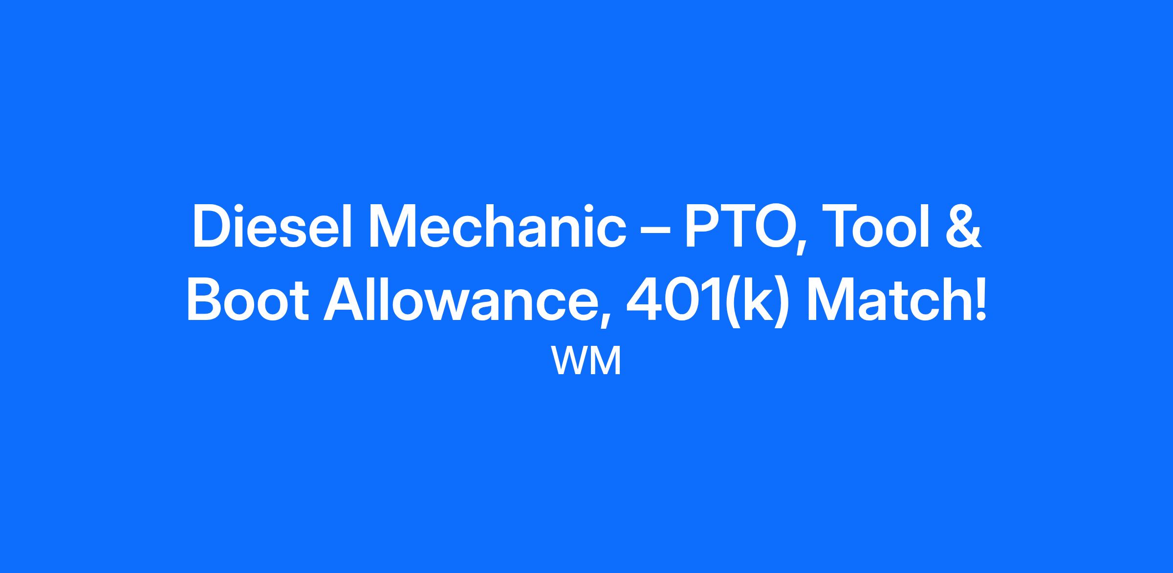 Those are the key details on pay and schedule – now here’s more on what you’ll be doing as a Diesel Mechanic at WM.