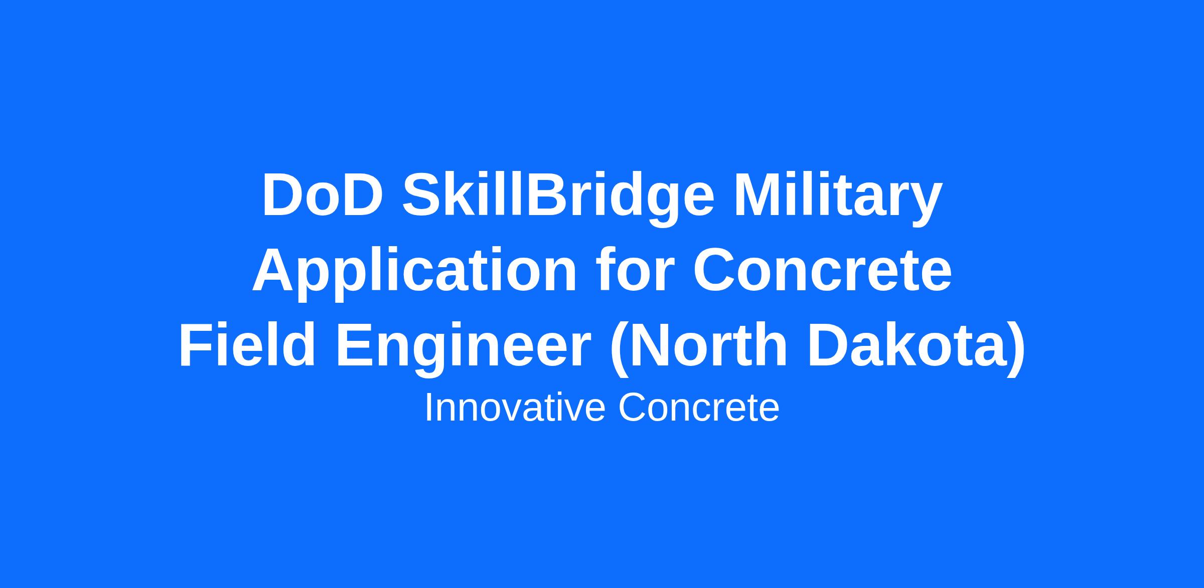 DescriptionInnovative Concrete, LLC is excited to announce a unique opportunity for military personnel transitioning to civilian life through the DoD SkillBridge program as a Commercial Concrete Field Engineer in North Dakota. This position allows candidates to leverage their military training and experience to gain valuable skills in the concrete and construction industry while supporting our Innovative projects.