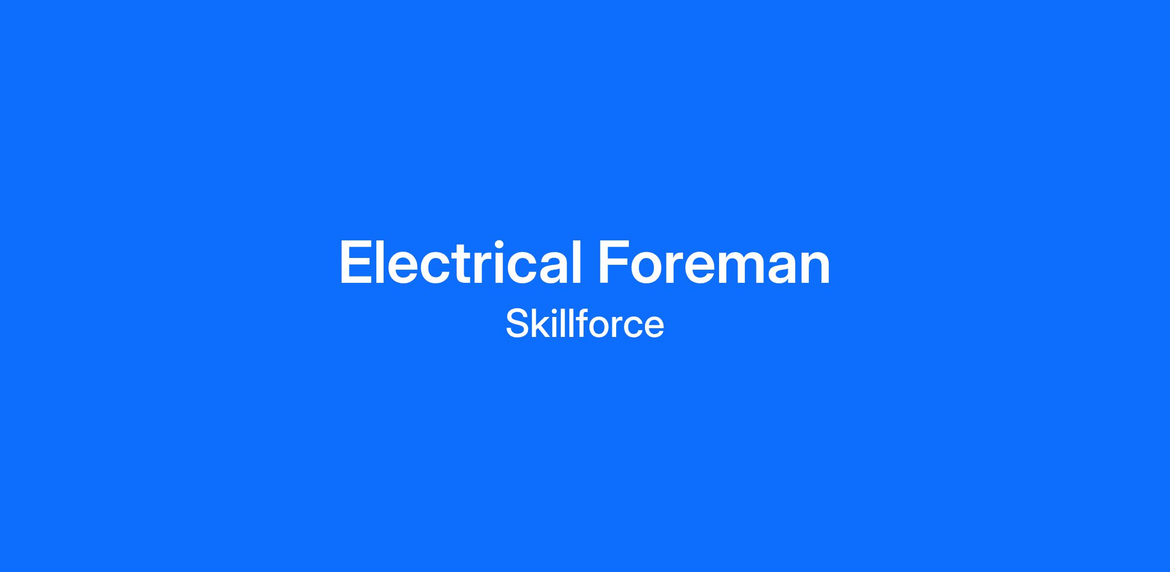 If you are a skilled Electrical Foreman looking for work, apply today!