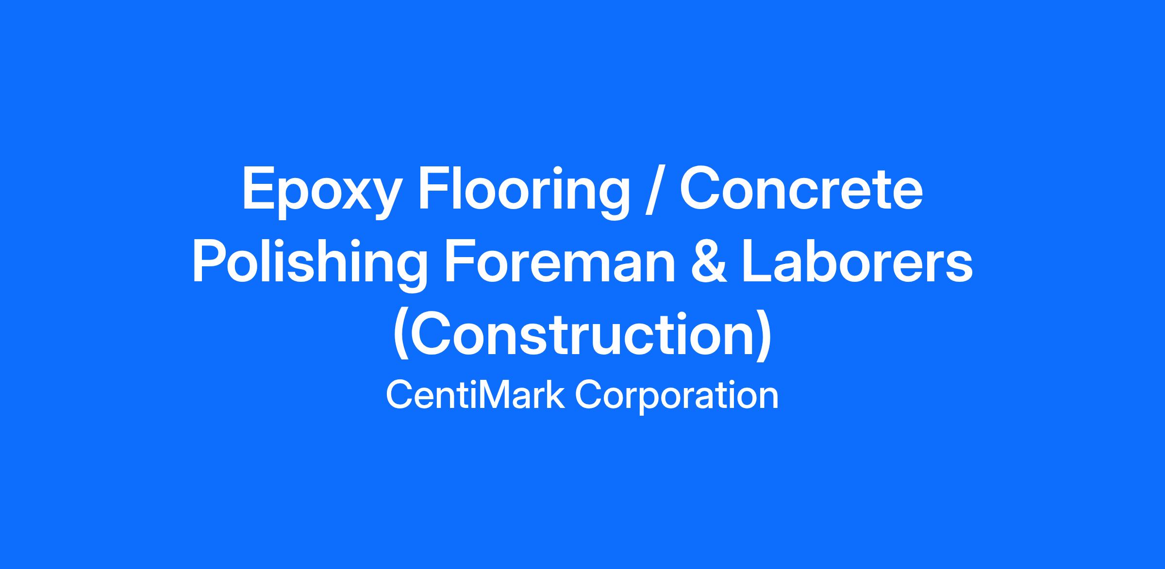 The successful candidate for our Epoxy Flooring / Concrete Polishing Crew & Foreman opportunities will demonstrate initiative, be a self-starter with a high level of professional integrity, and have a strong work ethic and competitive drive.