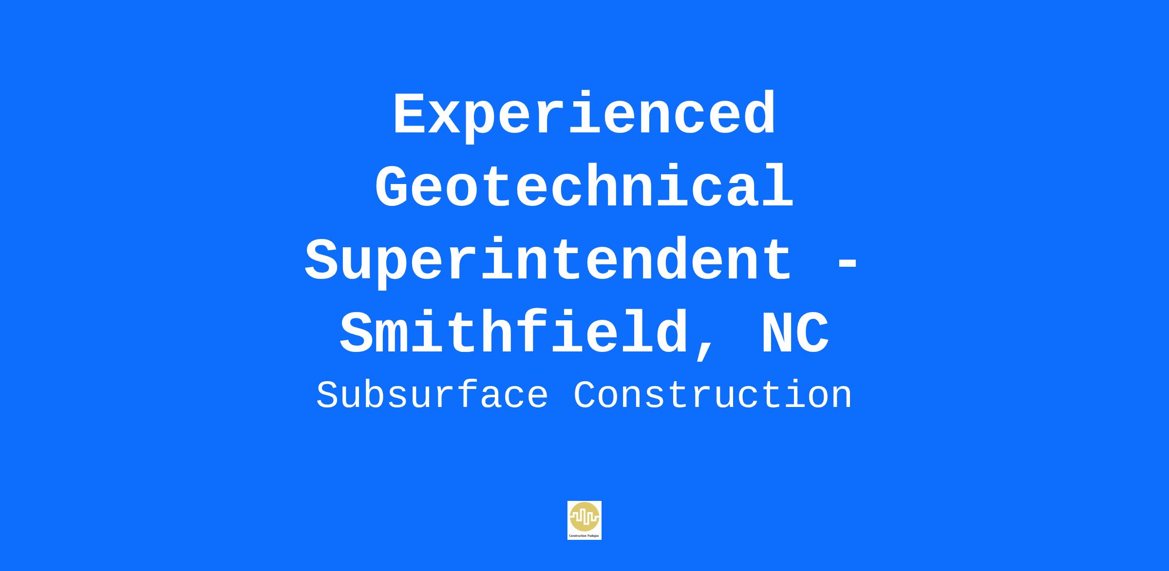 The superintendent is responsible for managing all day to day aspects of their assigned projects from the beginning through completion. Including: coordination of all construction activities with subcontractors; ensuring work is completed within quality and time frame expectations. The ideal candidate will have at least 3 years of experience as a Superintendent in Geotechnical Construction.