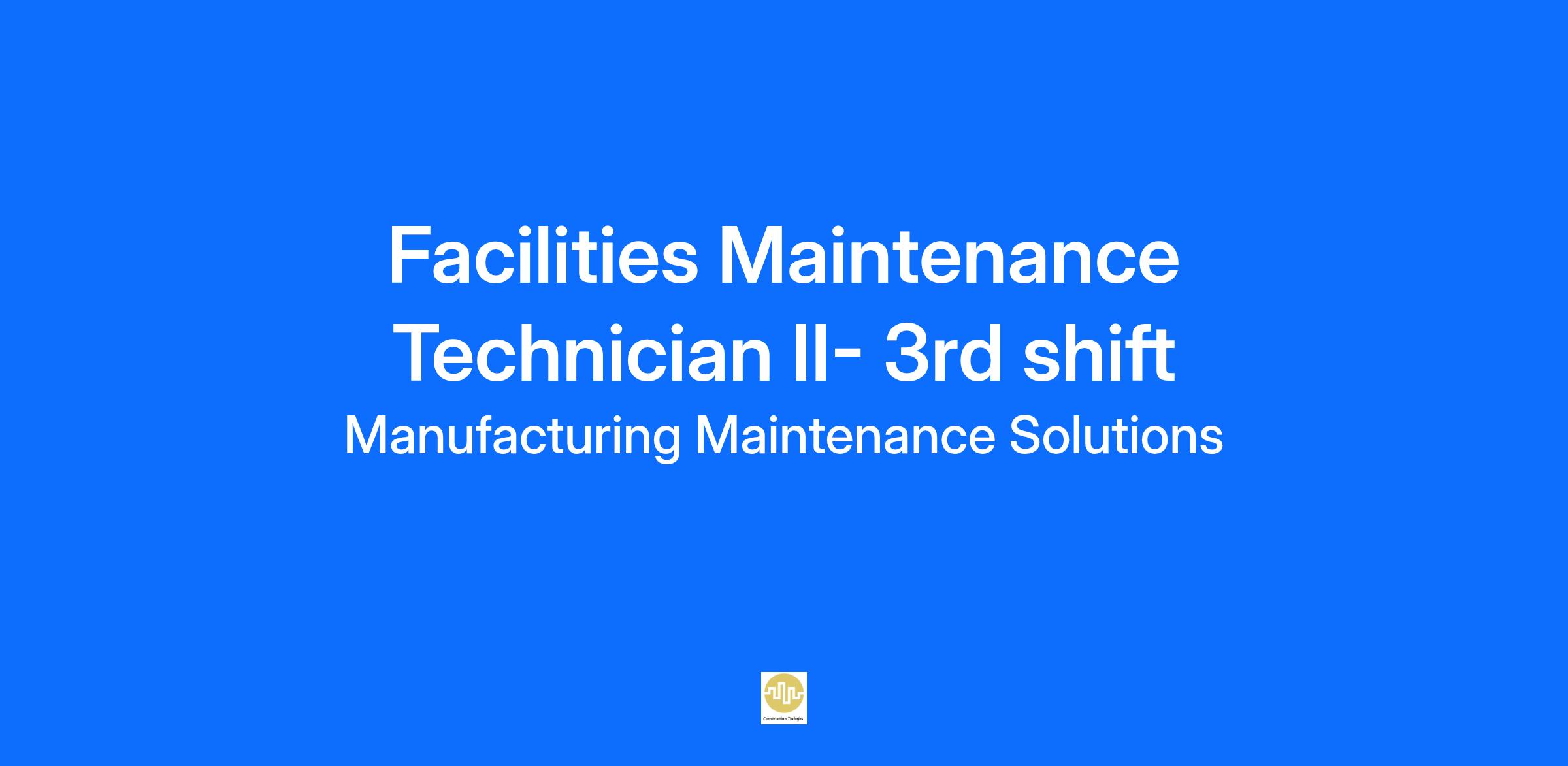 Facility Maintenance Technician II performs advanced maintenance tasks and troubleshoots for building systems and equipment. This role involves taking a more proactive approach to facility maintenance, including diagnosing complex issues, making repairs, and performing routine and preventive maintenance on HVAC, plumbing, electrical, and mechanical systems. The technician may also mentor junior staff and assist in the planning and execution of facility improvement projects