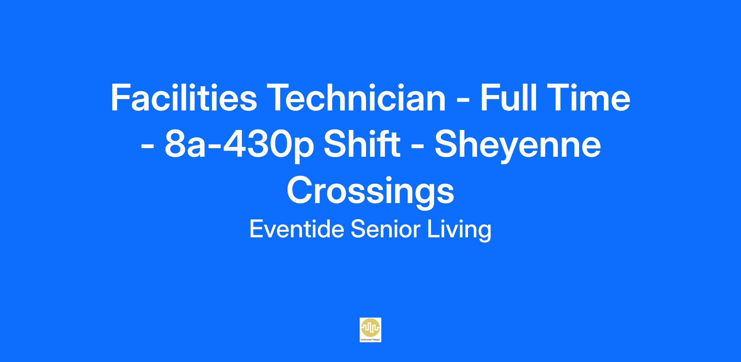 Eventide Senior Living Communities Sheyenne Crossings in West Fargo, ND is seeking a Facilities Technician to work full time, 8a-430p, Mon-Fri. Includes on-call every 6 weeks.