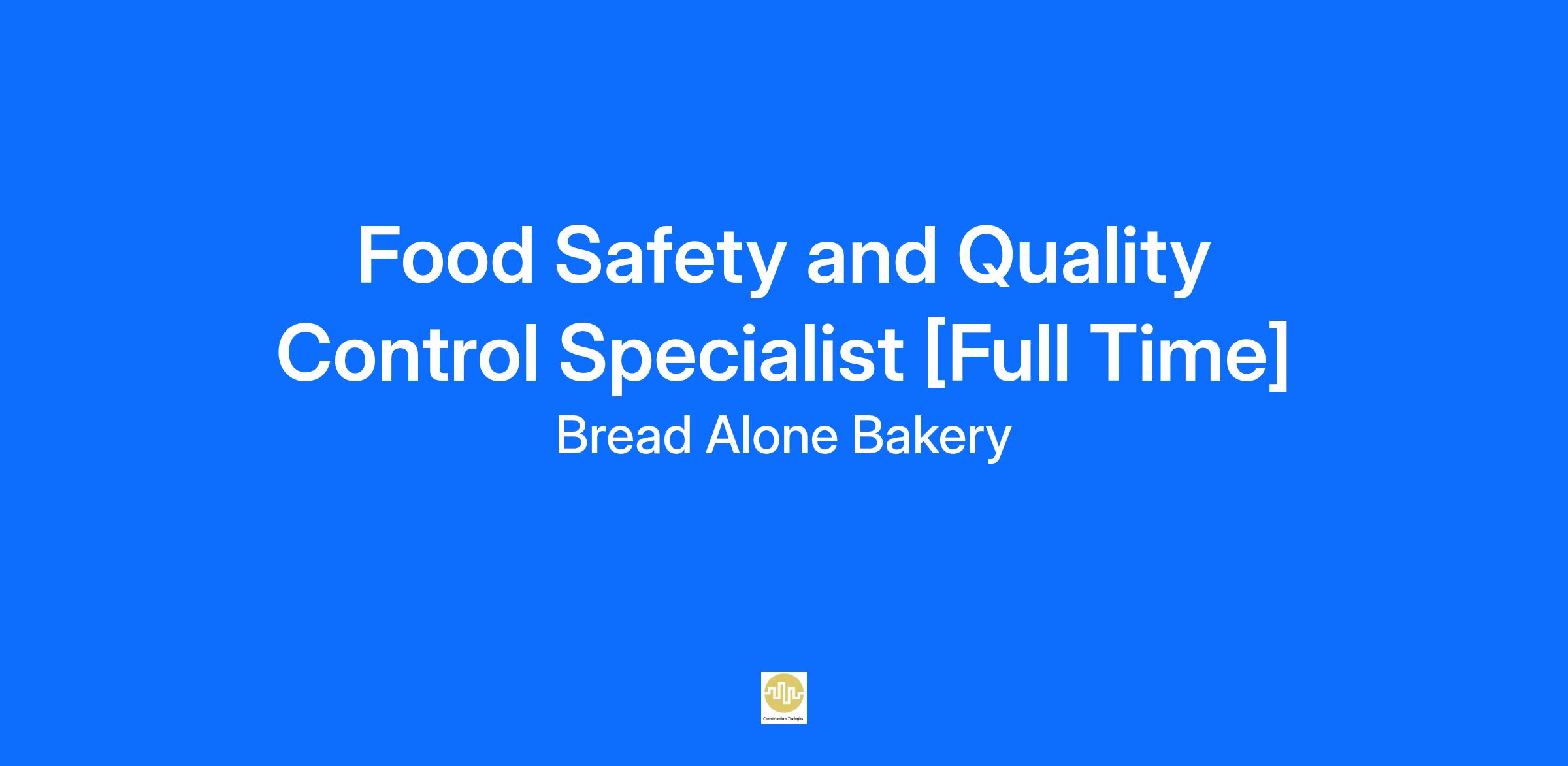 The Food Safety and Quality Control Specialist role actively supports the continuous improvement of the Bread Alone Food Safety and Quality program. This role reports to the Food Safety and Quality Manager. The Food Safety and Quality Control Specialist embody the culture of respect and cooperation that Bread Alone requires for all who work here.