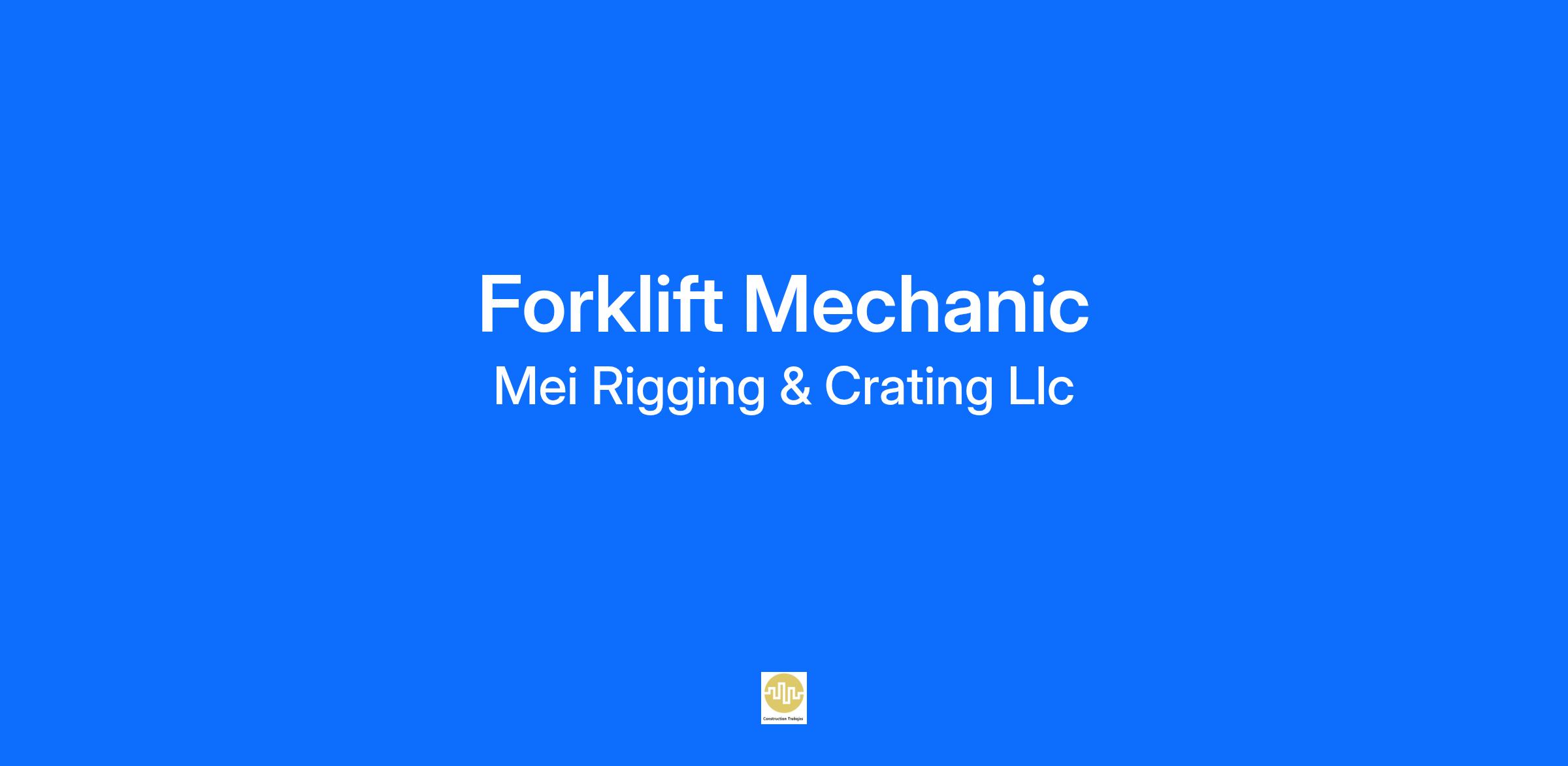 - Forklift mechanic providing maintenance for MEI fleet of forklifts (including: 6k lb. to Versa Lift 60/80k)
