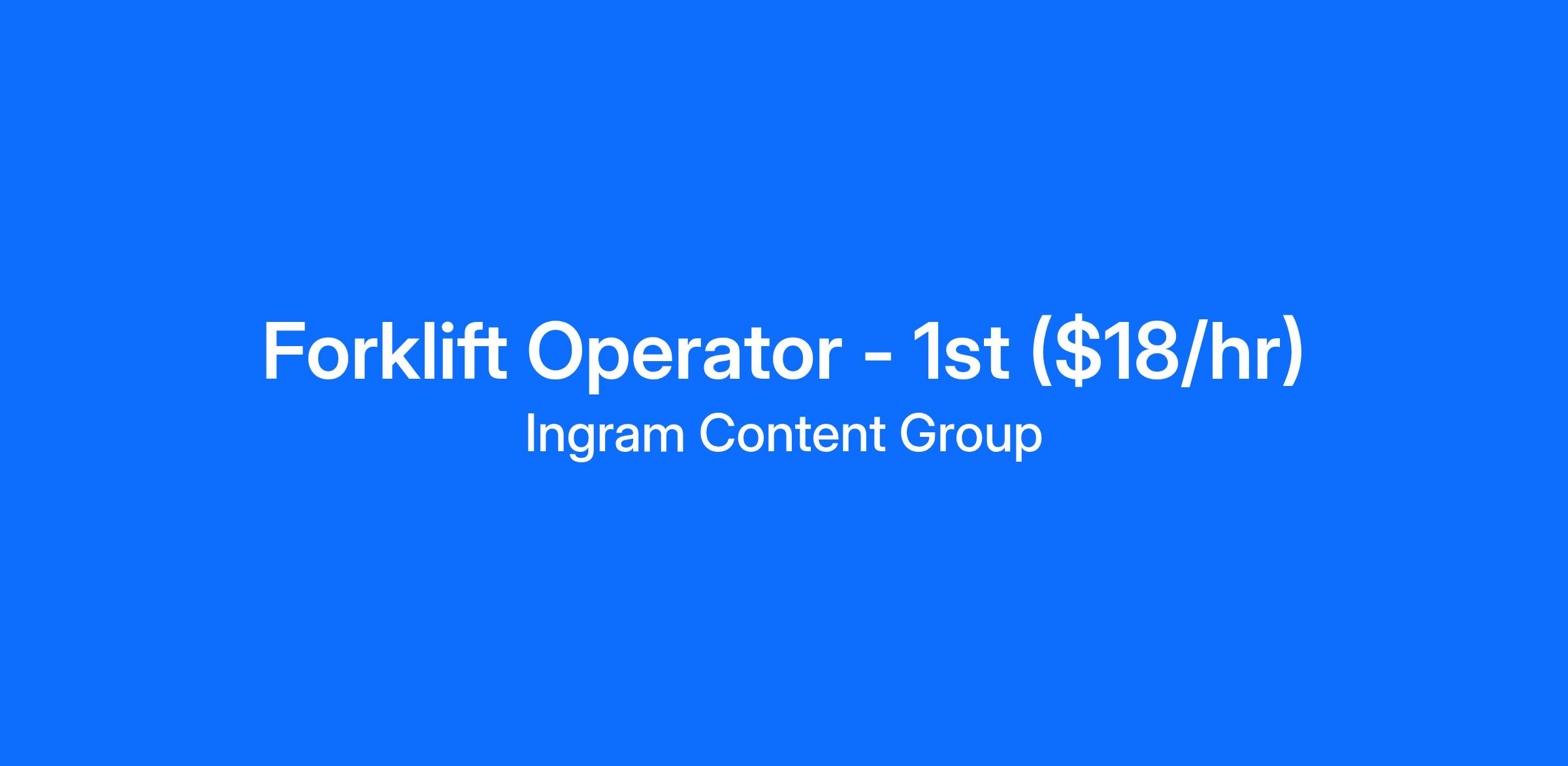 Ingram Content Group (ICG) is hiring a Forklift Operator to start with our team in Fort Wayne, IN.