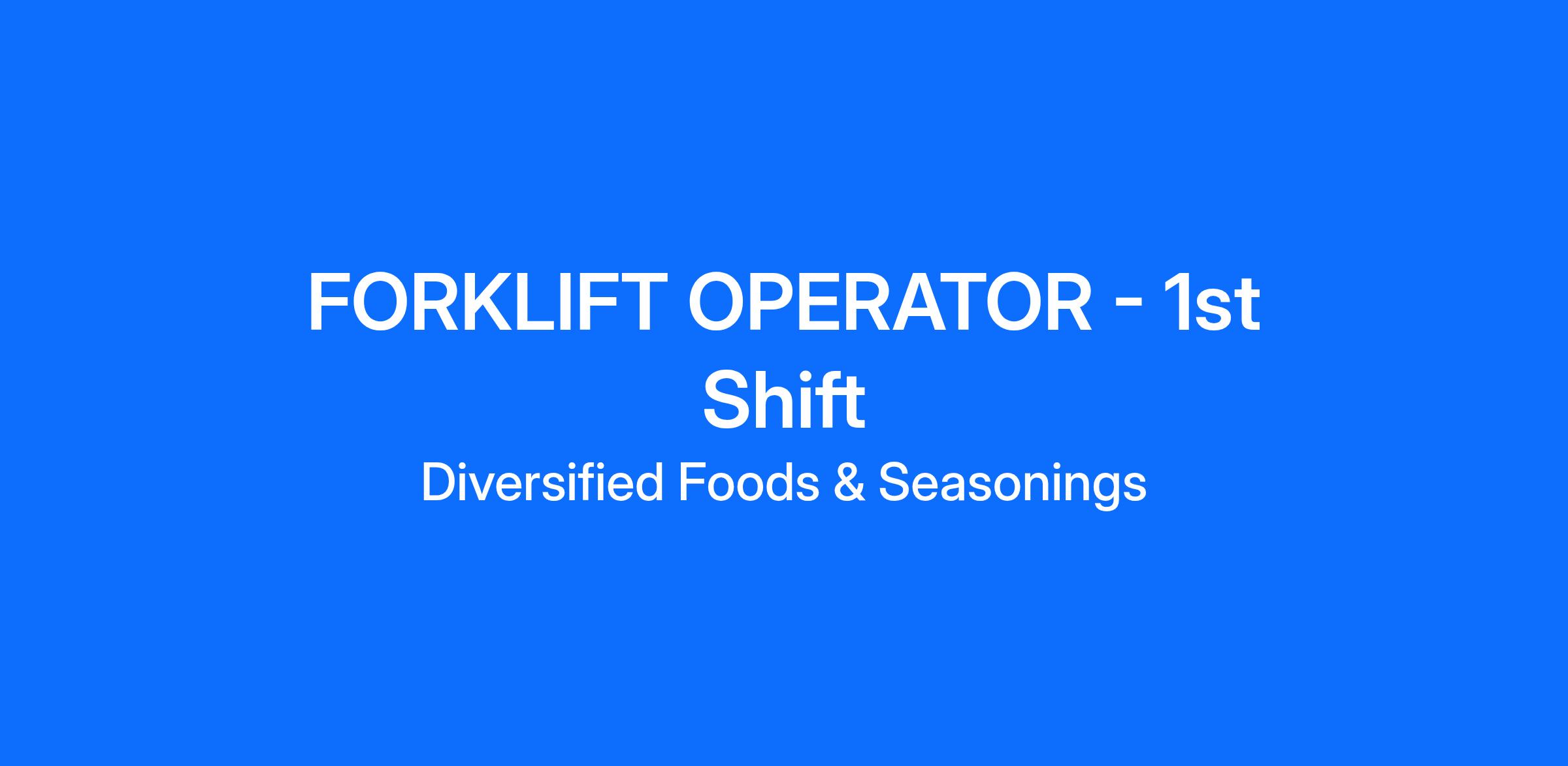 We are currently seeking a Forklift Operator at our Diversified Foods and Seasonings facility in Theodore, AL.