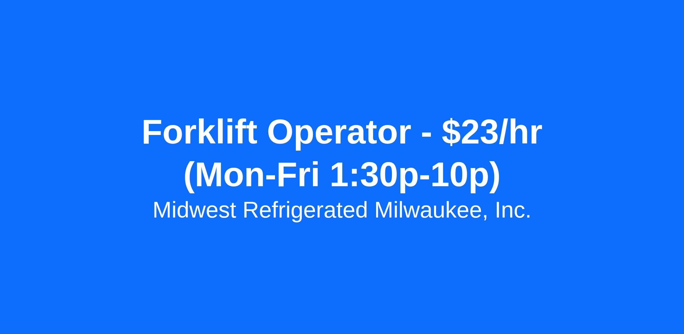 Forklift Operator - $23/hr (Mon-Fri 1:30p-10p)