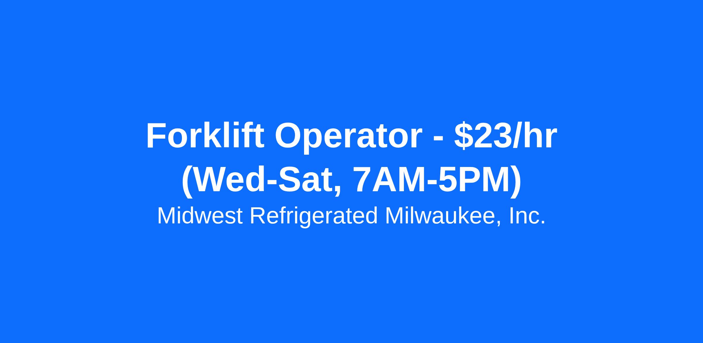 Forklift Operator - $23/hr (Wed-Sat, 7AM-5PM)