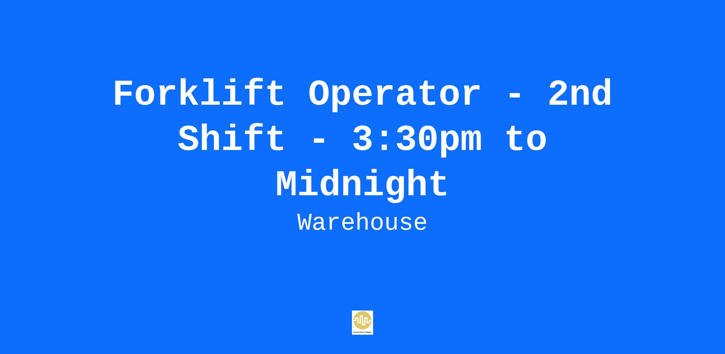 Shift/Schedule: 2nd Shift - 3:30pm to Midnight - Monday thru Friday with O/T