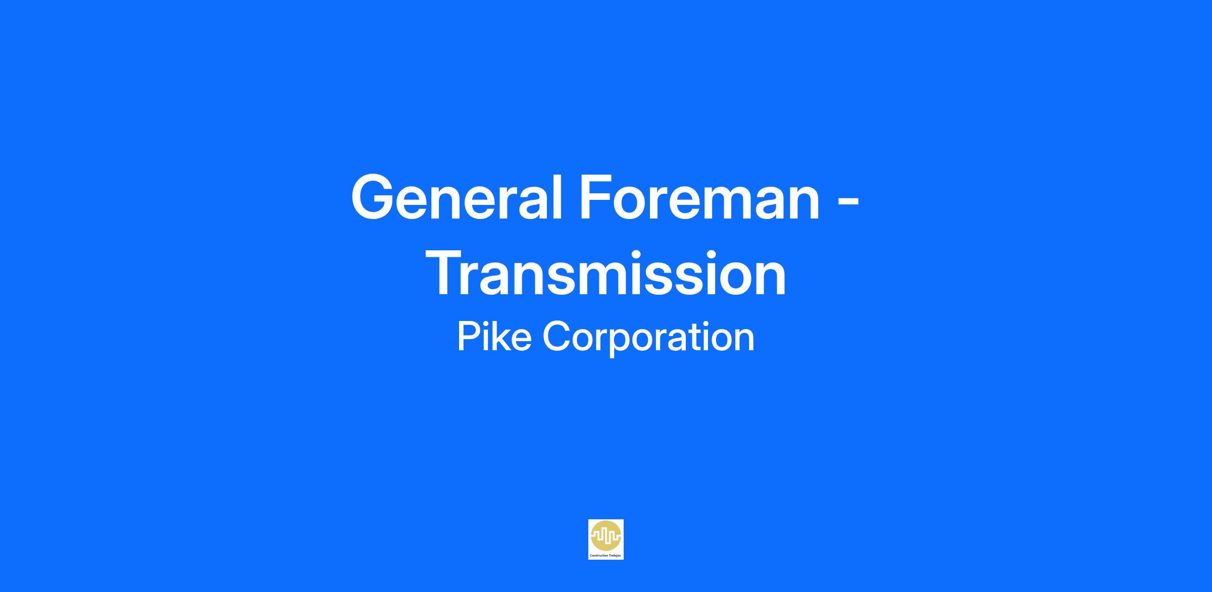 General Foreman - Transmission