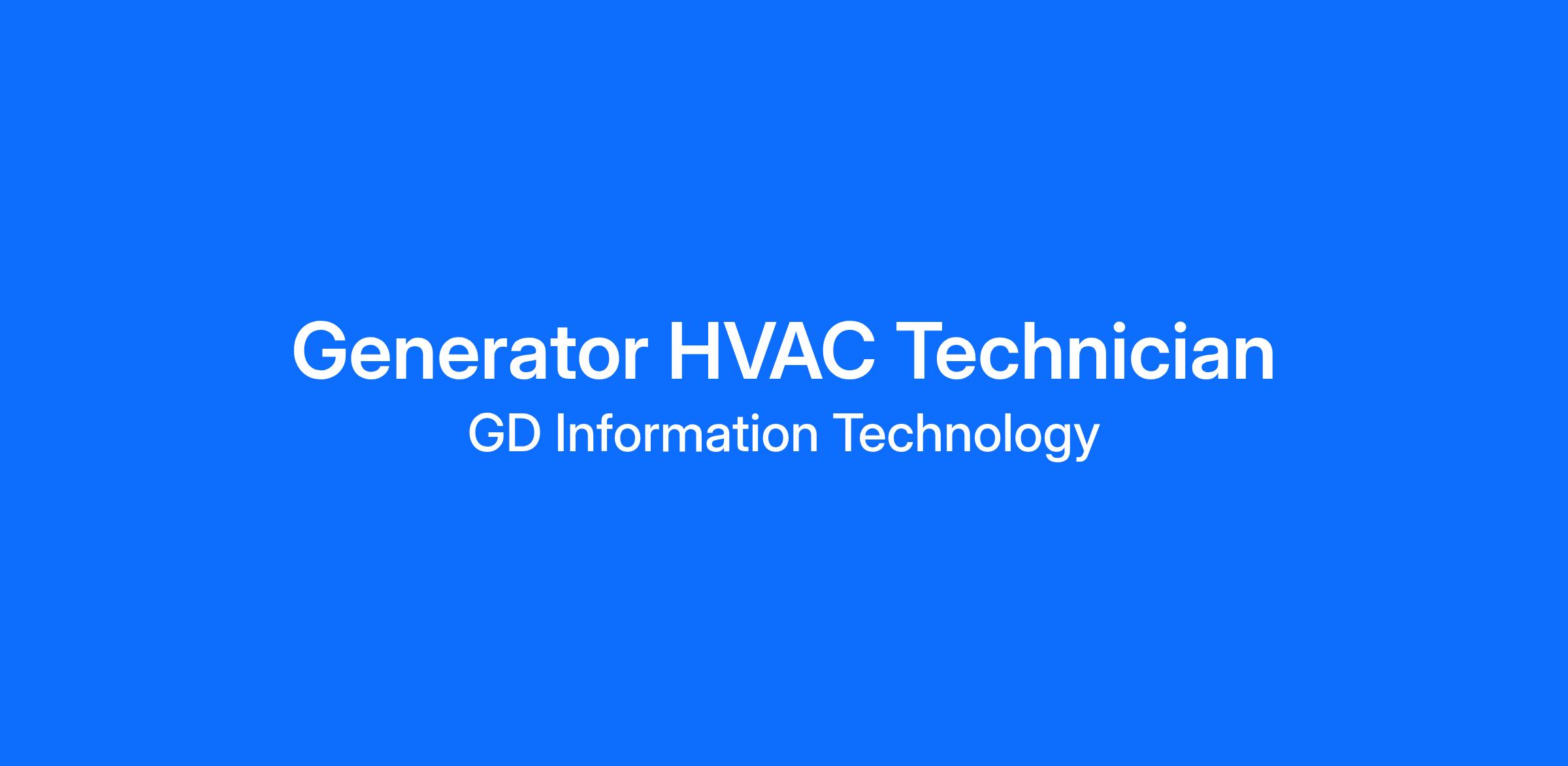 Bring your Generator and HVAC expertise along with a drive for innovation to GDIT. The Generator and HVAC Mechanic must have: