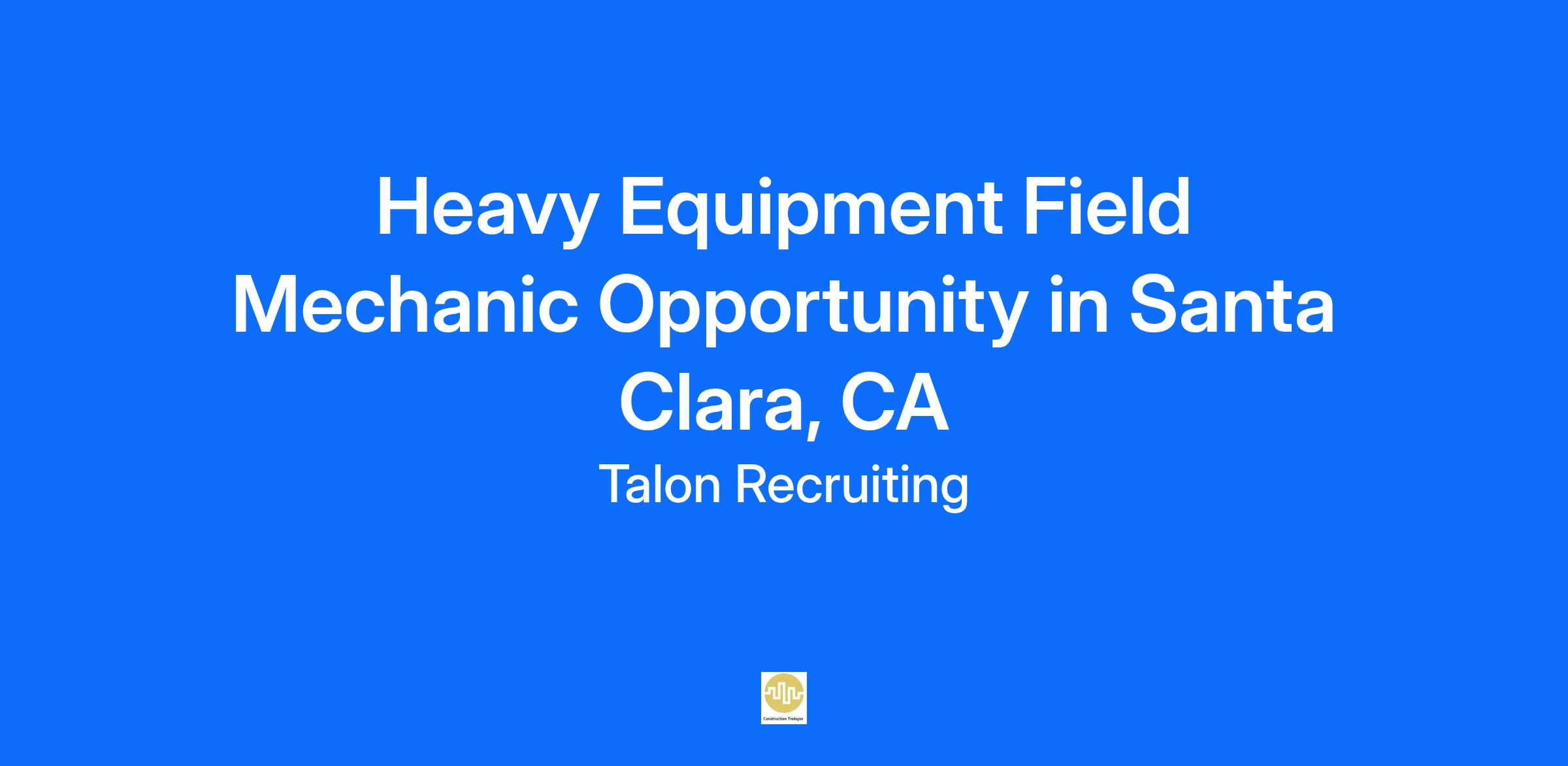 Talon Recruiting has partnered with a leading Heavy Equipment Rental Company in search of a Heavy Equipment Field Mechanic to join their team in Santa Clara, CA.