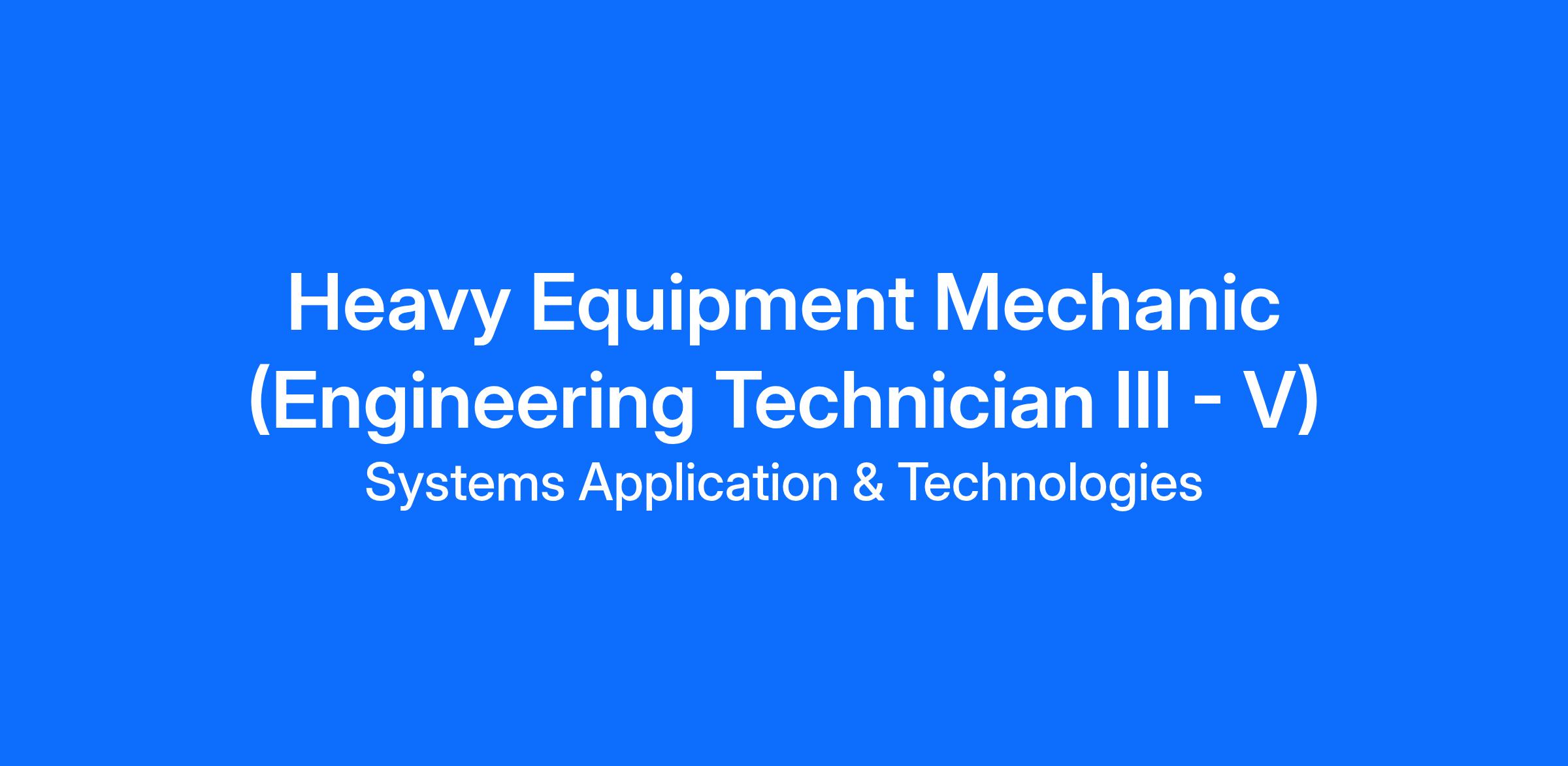 - Strong mechanical aptitude and understanding of heavy equipment systems including knowledge of engines (diesel and gasoline), hydraulic systems, electrical systems, transmissions, and brake systems.