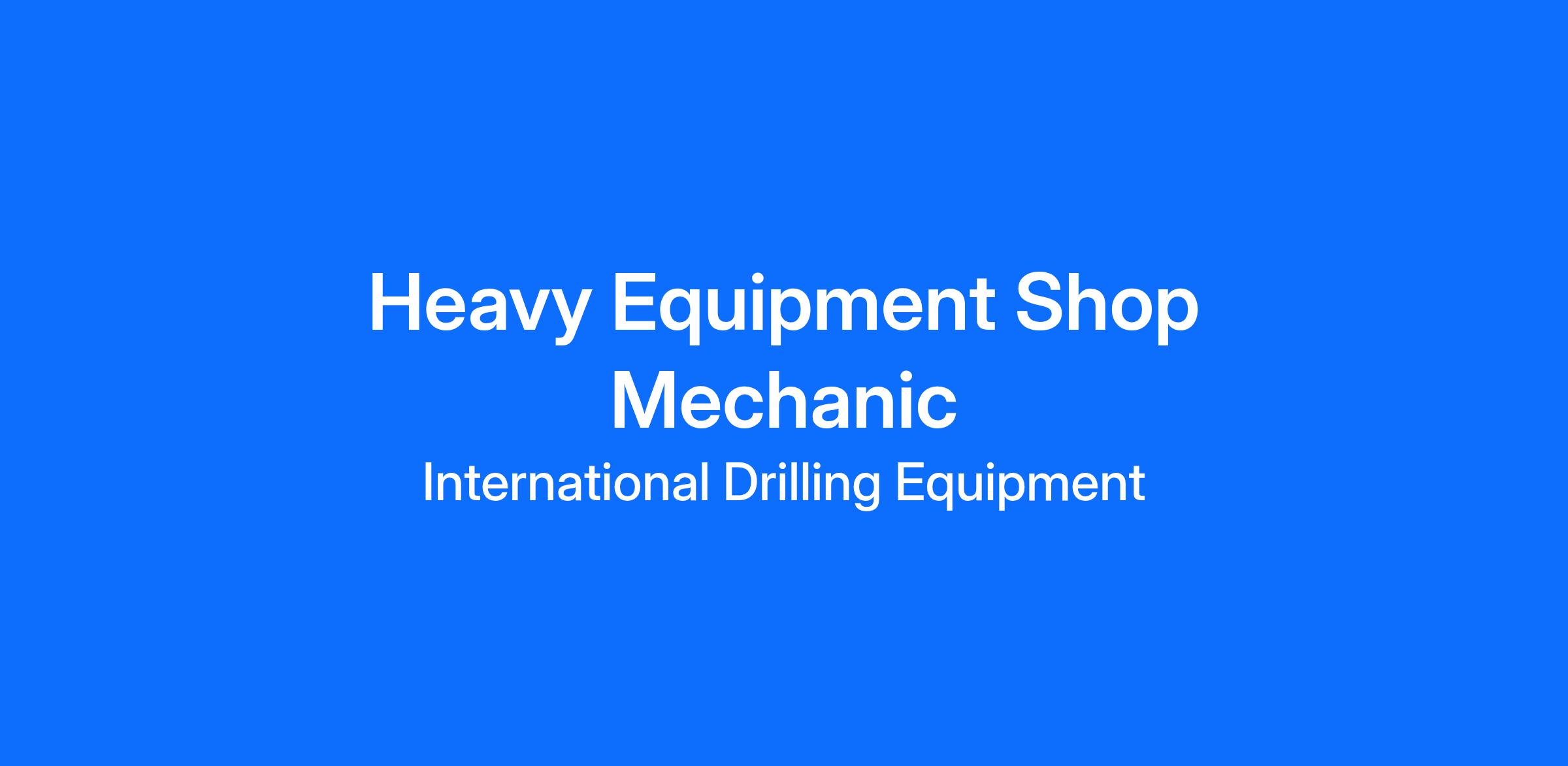 International Drilling Equipment is seeking a Shop Mechanic to join our team.
