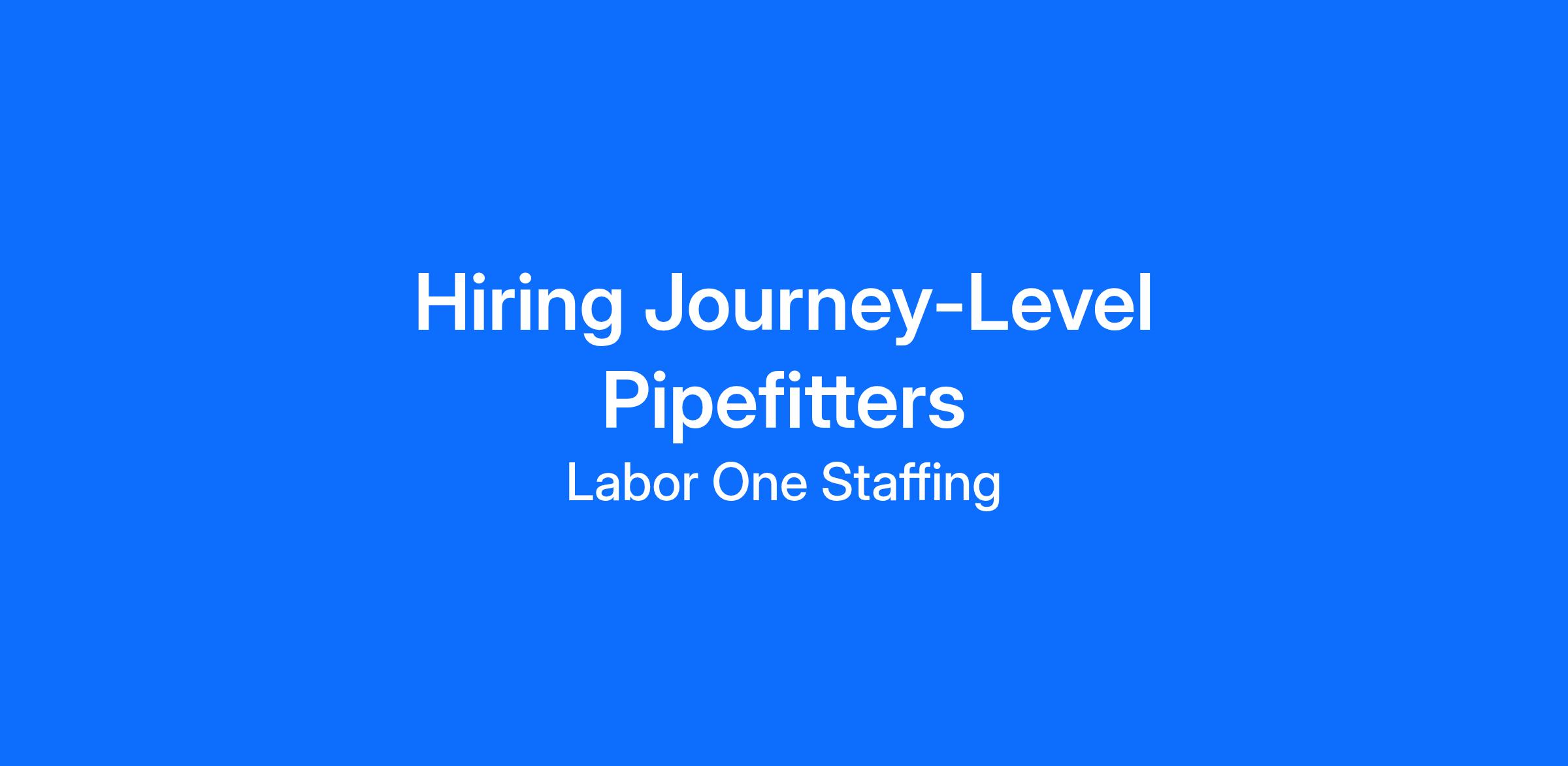 Labor One is hiring Journey-Level Pipefitters for a project in San Diego, California.