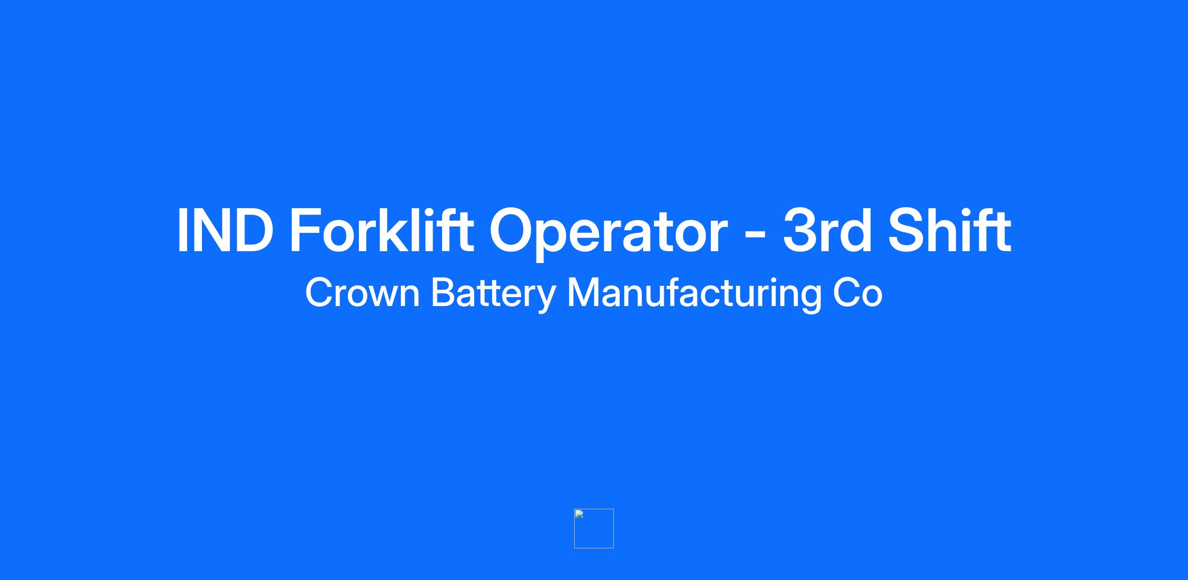 JOB TITLE: IND Forklift Operator DEPARTMENT: Manufacturing