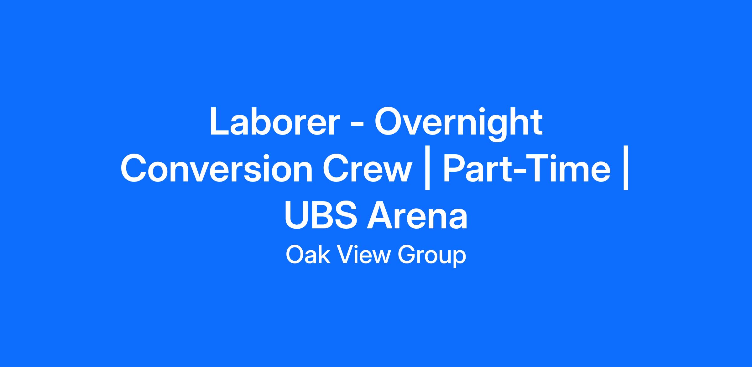 We are our hiring our Laborer - Overnight Conversion Crew. The Laborer - Overnight Conversion Crew is responsible for Operating and converting UBS Arena from event to event. You will be working to reconfigure the arena, it’s floor and concourses based on the specific needs of each event at UBS Arena.
