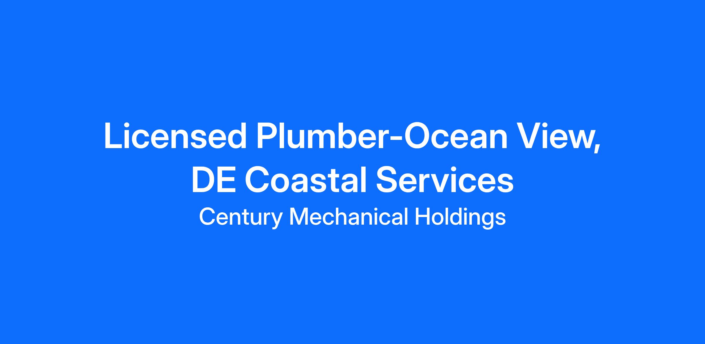 Licensed Plumber, Located in Ocean View, DE