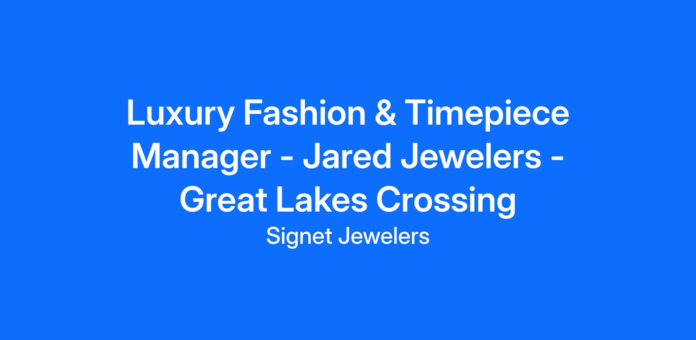 The Luxury Fashion and Timepiece Manager is a supporting management position within Jared Jewelers stores. This position will achieve store and individual sales goals by providing superior guest experience and expert knowledge on all fashion merchandise (diamond fashion, gold, and color) and timepiece brands. This position will be responsible for overseeing fashion and timepiece sales performance, fashion and timepiece merchandise launch executions, implementing fashion and timepiece product education provided by Signet, and developing training plans to improve areas of opportunity for store as a whole.