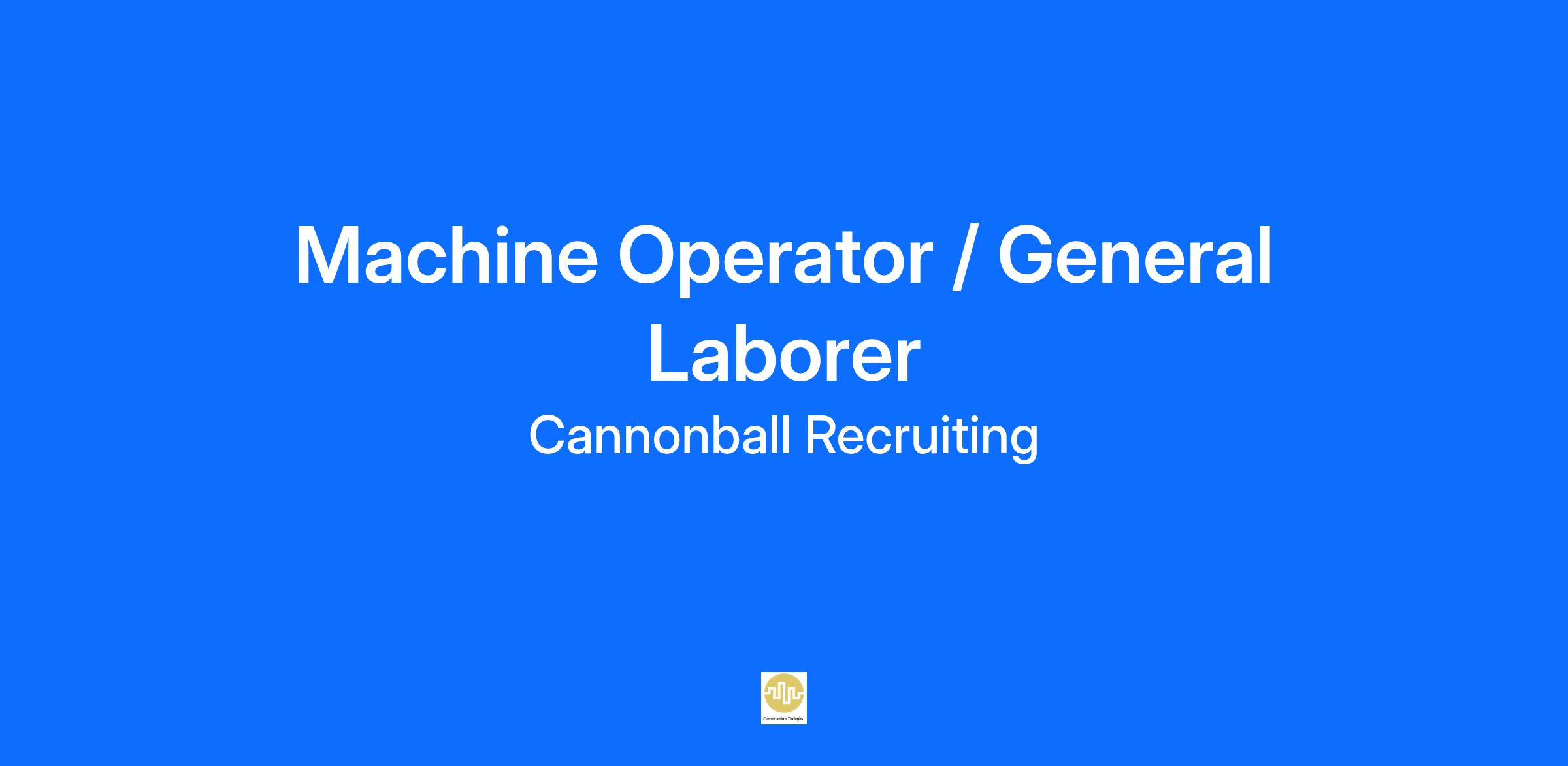 - Cannonball Recruiting is seeking a Machine Operator/General Laborer for a sheet metal shop located in Dover, PA.