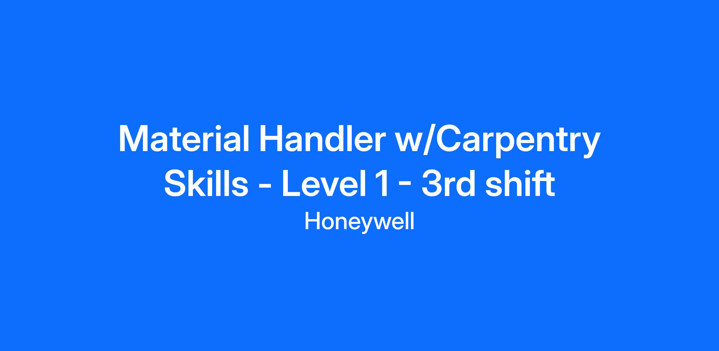As a Material Handler with Carpentry level 1 here at Honeywell, You will report to the Material Management Leader and you’ll work out of our St. Louis, MO location on a On-site work schedule. In this role, you will impact the overall efficiency of our supply chain by accurately handling materials, ensuring timely deliveries, and maintaining inventory accuracy. You will need to have carpentry skills to create customized pallets for shipping.