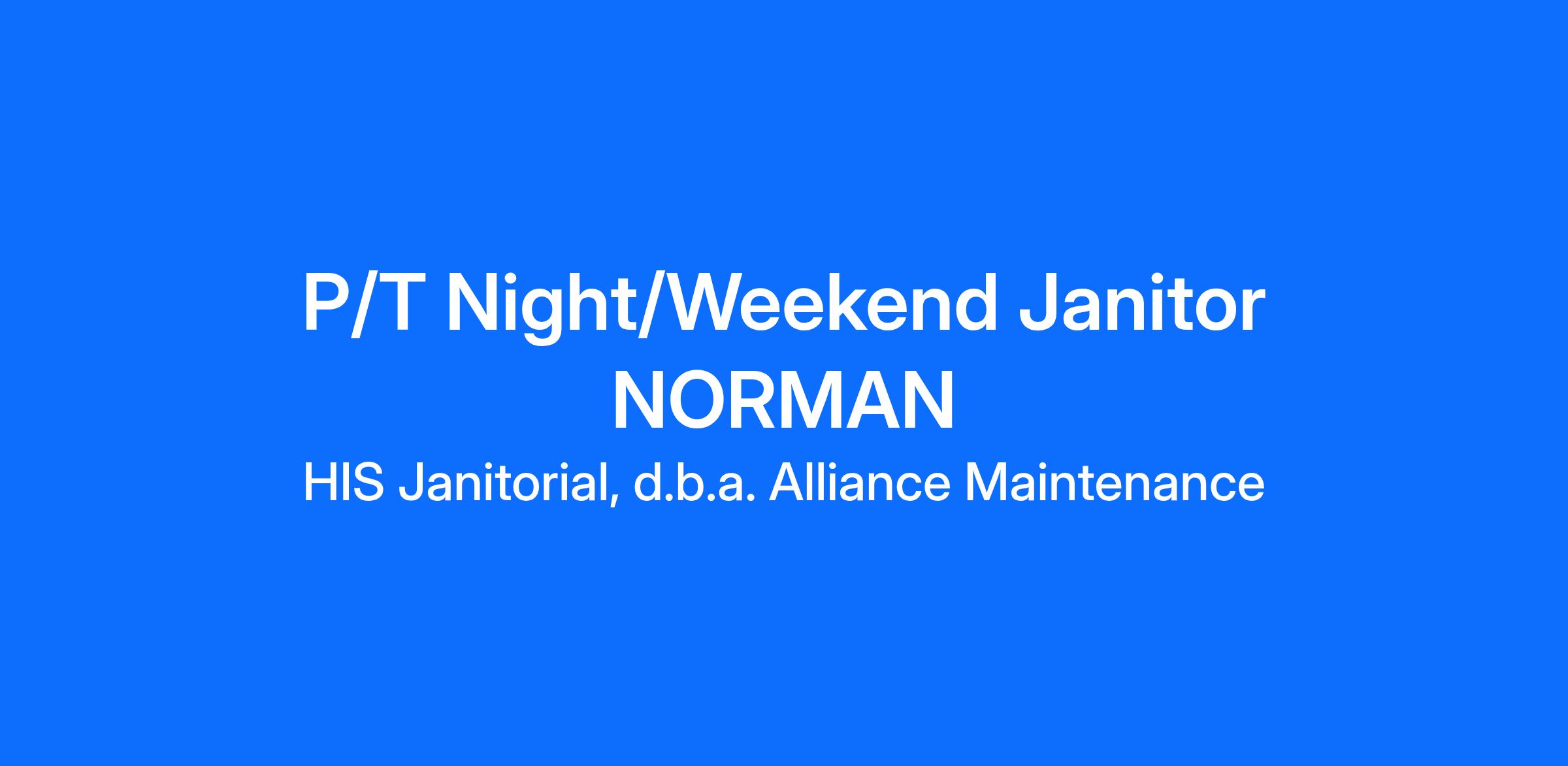 We are a commercial cleaning company looking for responsible individuals to clean buildings during evenings and weekends. Job duties are performing routine commercial cleaning including but not limited to, sweeping, mopping, restroom cleaning, dusting, etc... We pride ourselves on treating our employees with respect and dignity. We pay on-time by direct deposit twice monthly. If you are wanting a company to help you find a flexible schedule that meets your needs please APPLY NOW for our immediate openings. We do conduct full criminal background checks. Starting pay is $15.00 per hr.