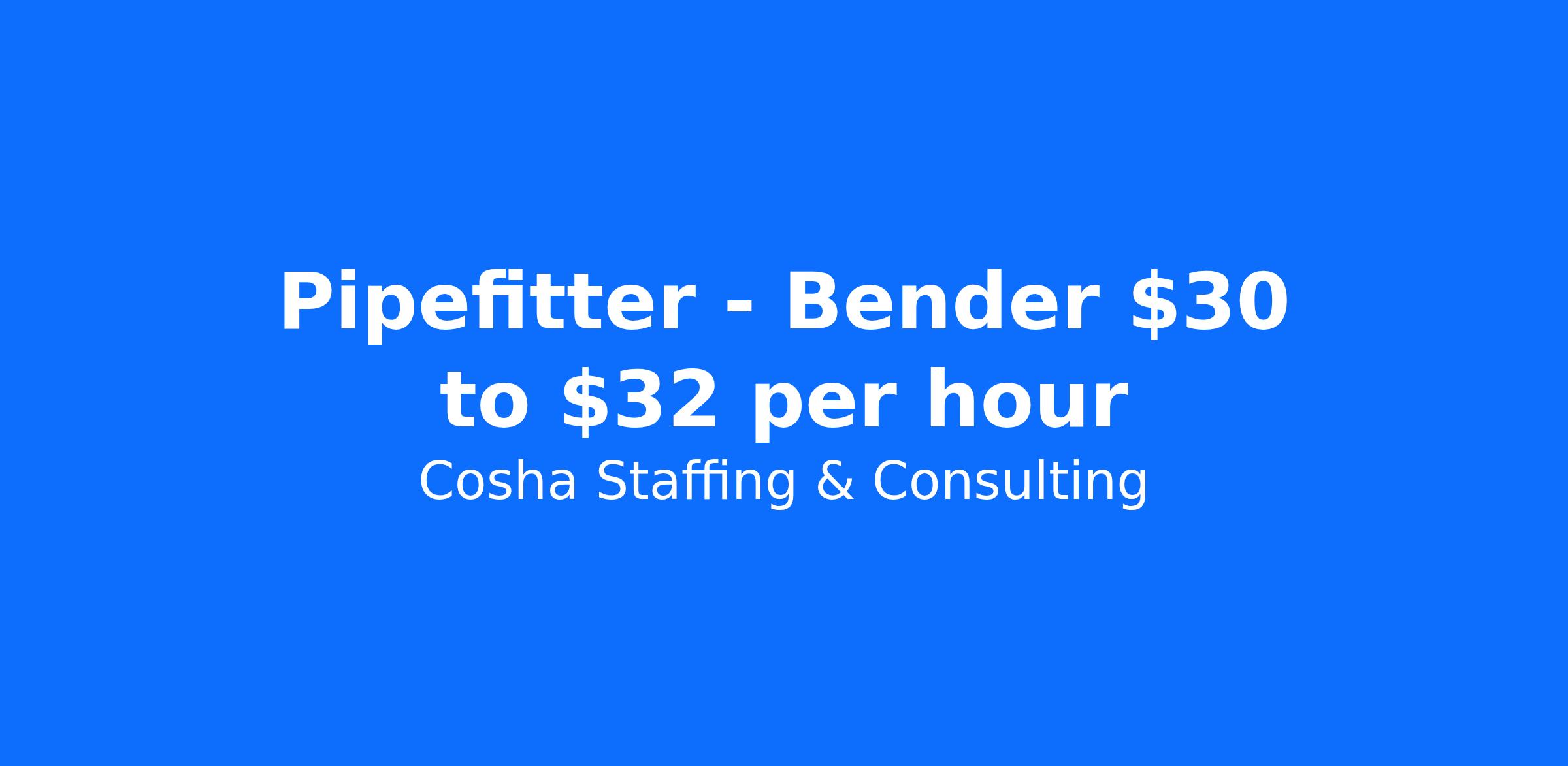 Pipefitter - Bender $30 to $32 per hour