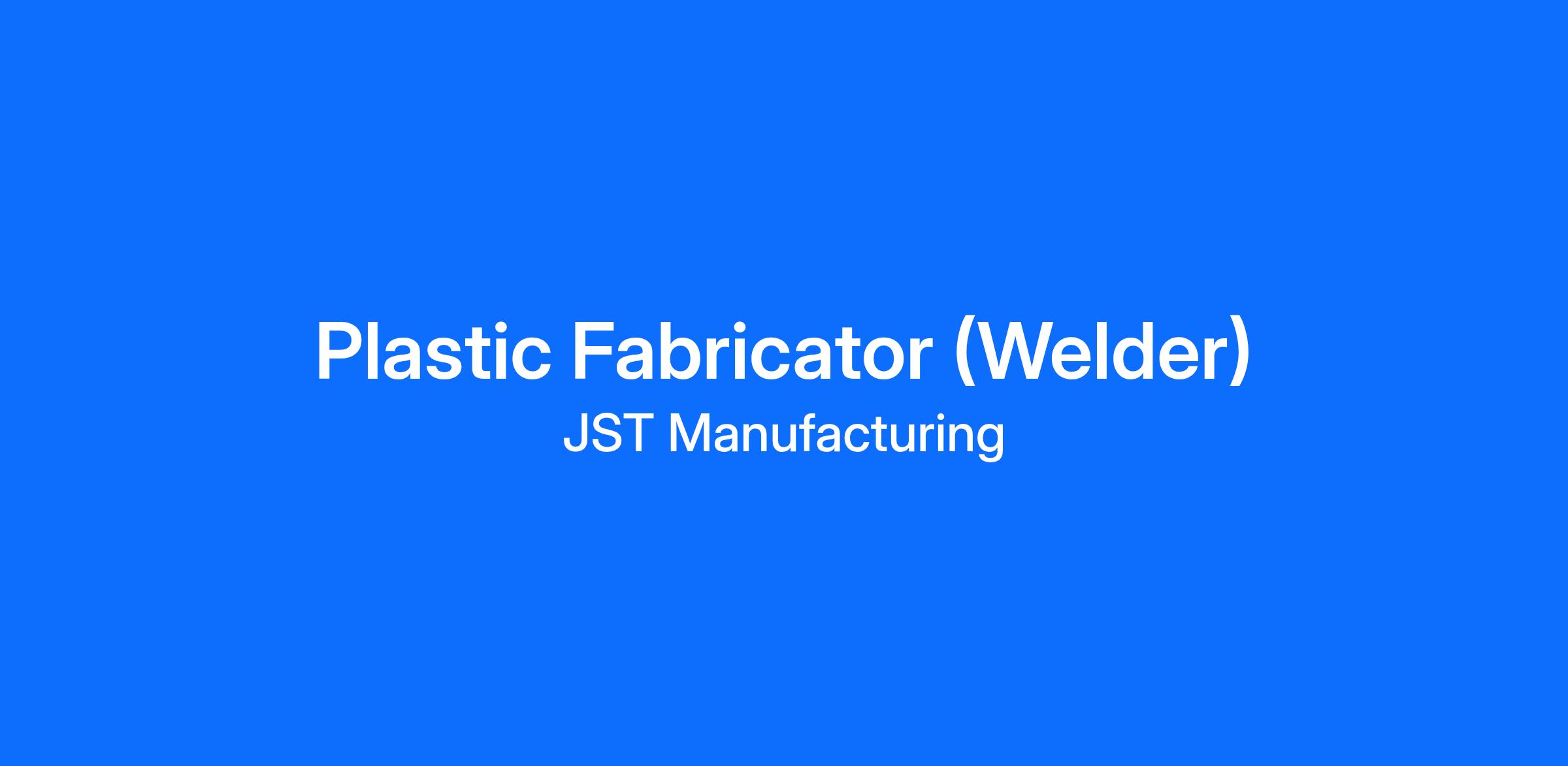 Fabricate, weld, and finish plastics to JST quality standards.