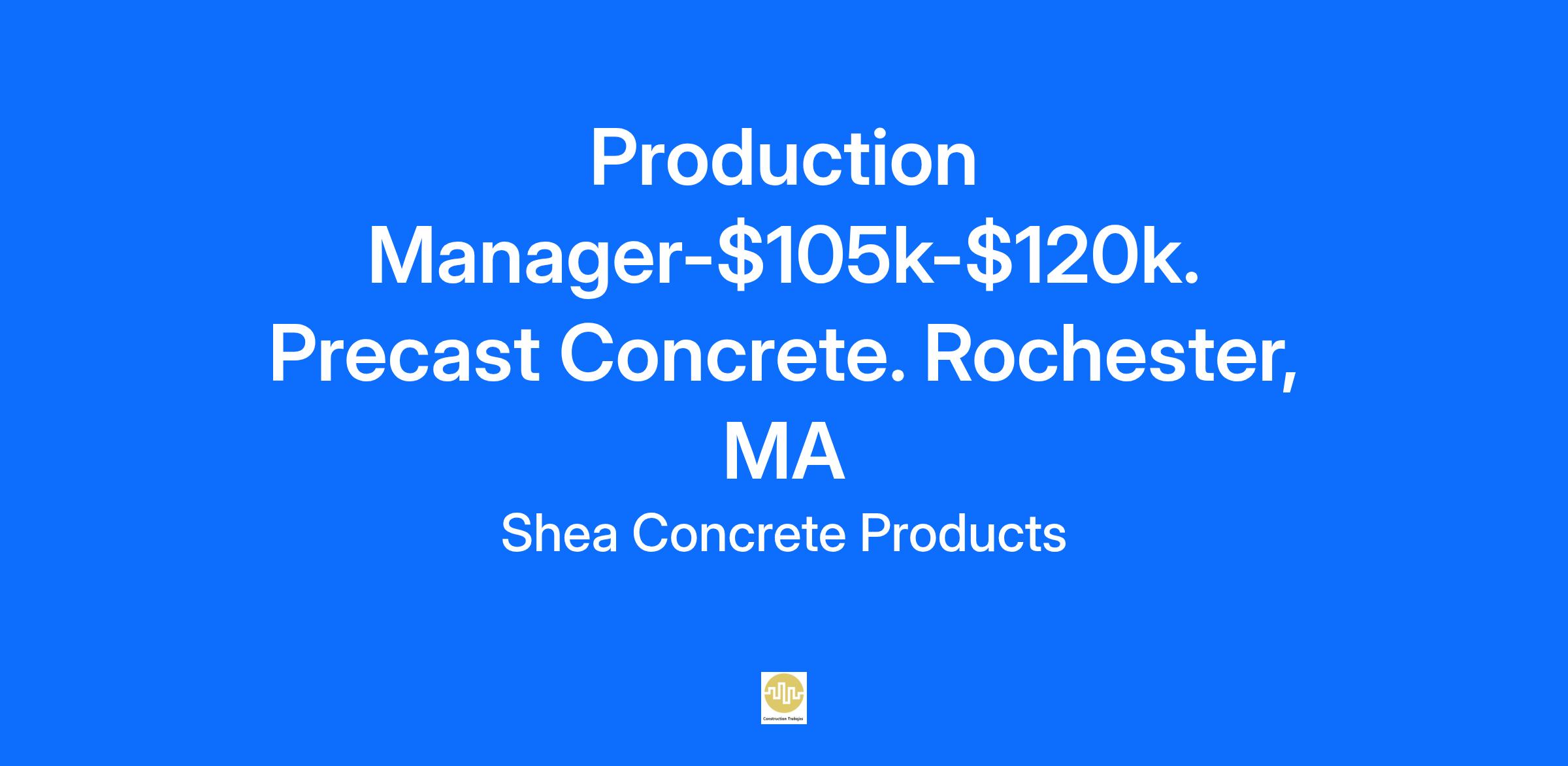 Shea Concrete Products, New England's premier Precaster, currently has an opening for an Production Manager at our Rochester, MA location (just 20 minutes from the beautiful Plymouth County seacoast.)