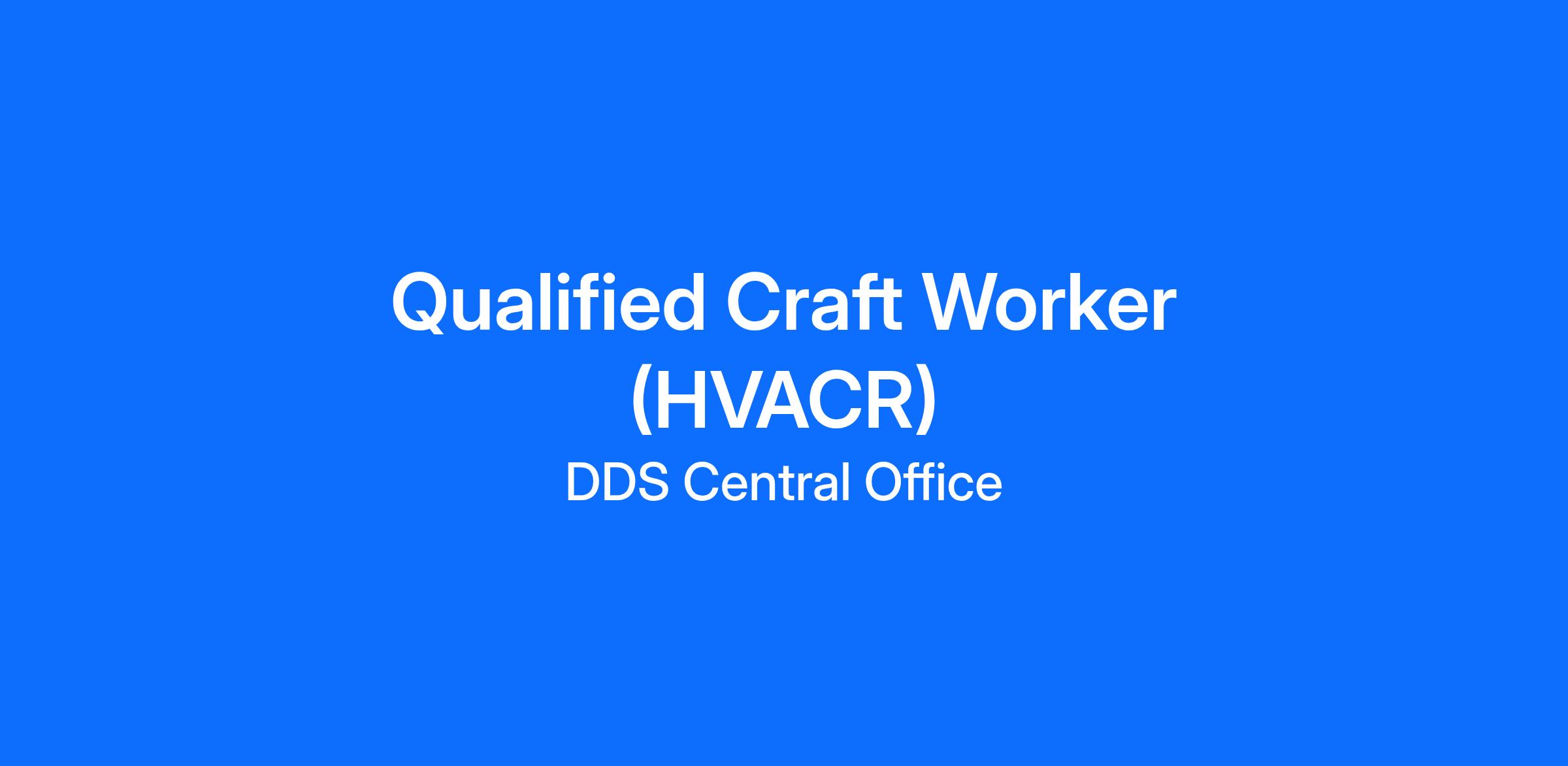 The State of Connecticut, Department of Developmental Services (DDS) has a vacant Qualified Craft Worker (QCW) HVACR position located within the Maintenance Unit of the DDS Fiscal Division, based out of Meriden.