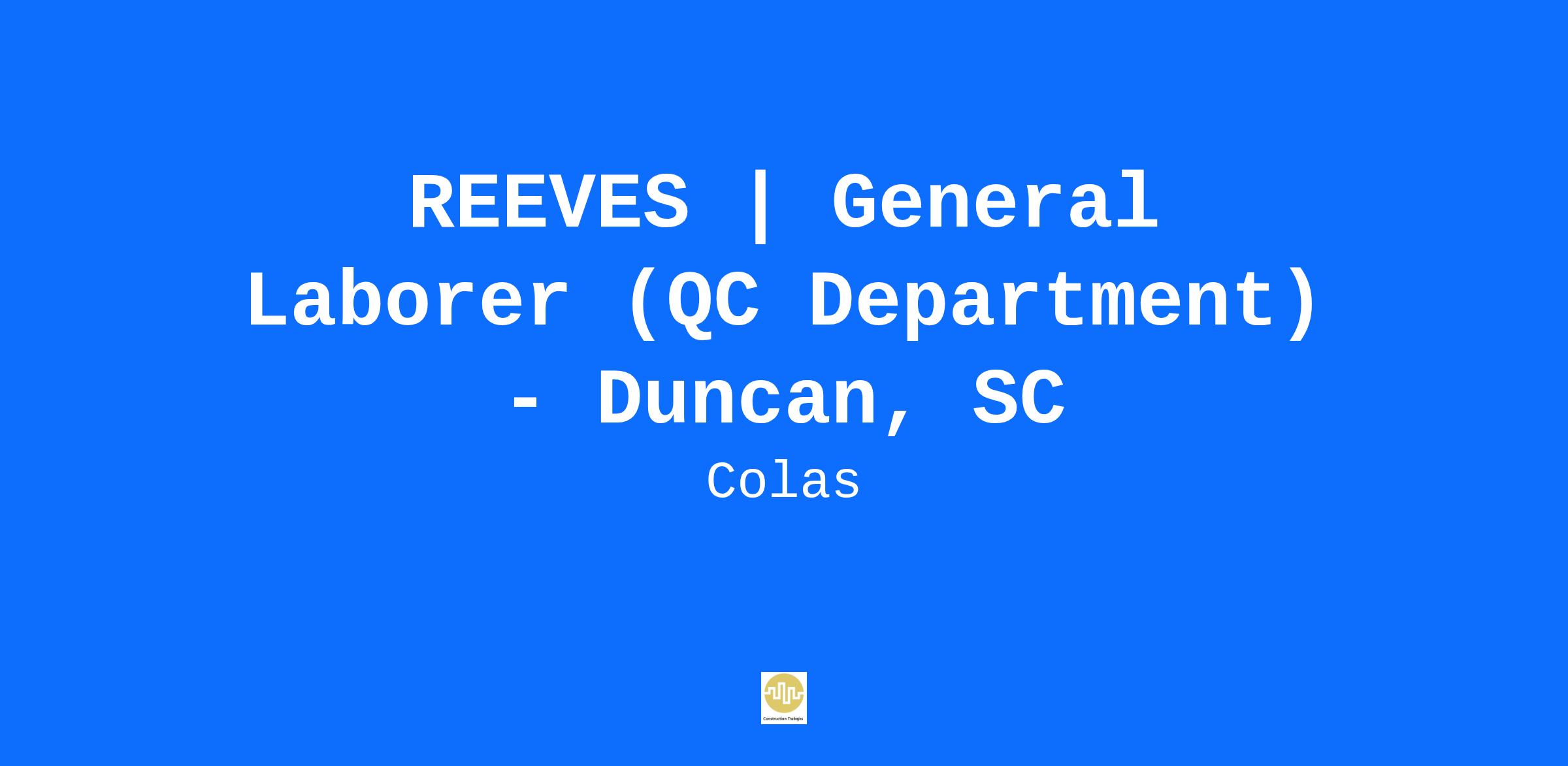 Reeves Construction Company is currently seeking a General Laborer for the QC Department based out of Duncan, SC location. The successful candidate for this role will have an uncompromising focus on safety excellence.