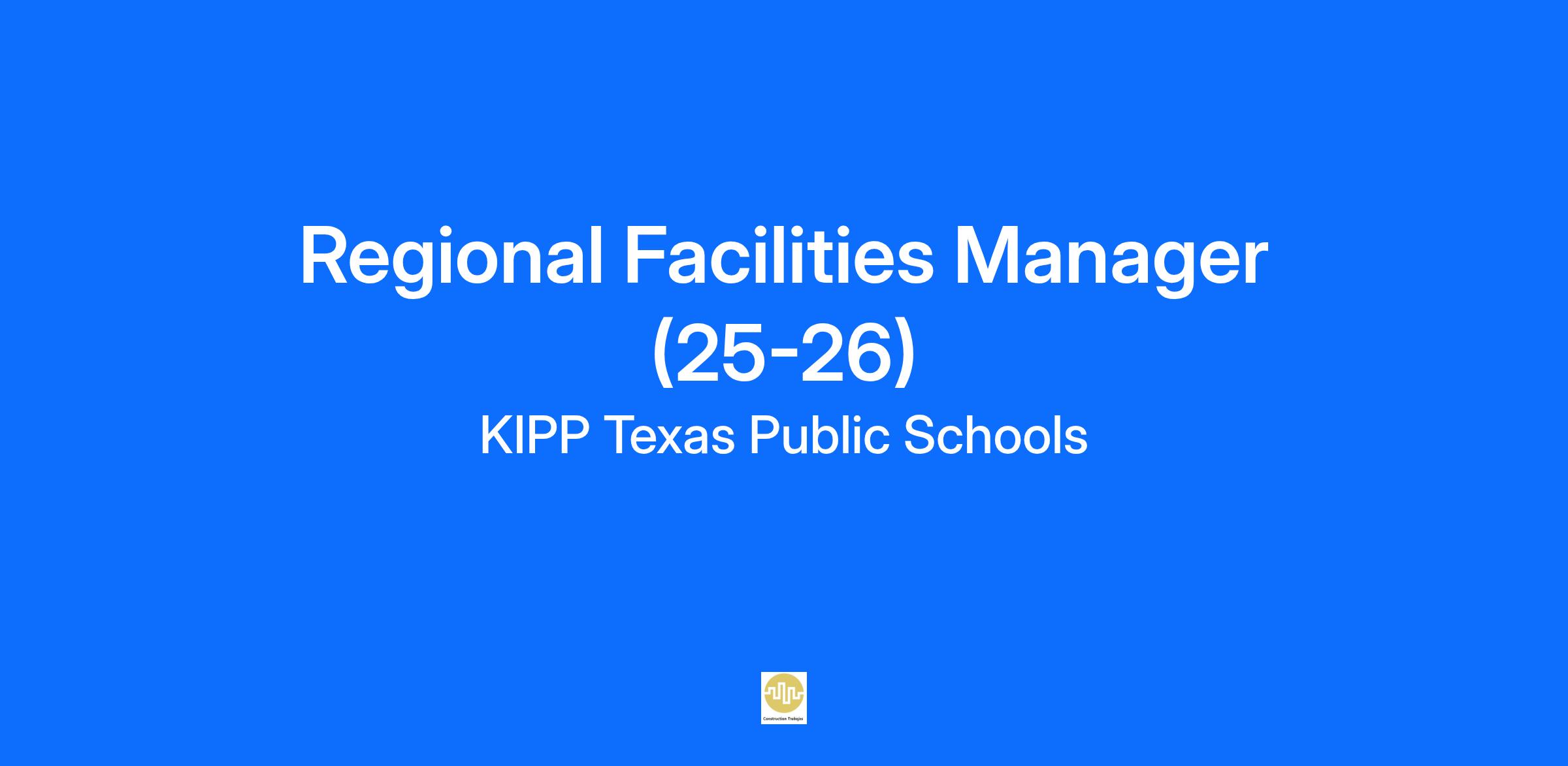 The Regional Facilities Manager oversees the maintenance and custodial operations across multiple KIPP Texas campuses within an assigned region. This role ensures that KIPP Texas students and staff are provided with safe, clean, and well-maintained facilities that support a conducive learning environment. The Regional Facilities Manager acts as the primary point of contact for facilities-related needs across campuses within their region and is responsible for maintaining service level agreements and managing the performance of facilities staff. This role is a key member of the statewide Facilities team and reports to the Director of Facilities. The Regional Facilities Manager will supervise Custodial Managers, Sr. Facilities Technicians, and third-party service providers, furthering the mission of KIPP Texas by delivering high-quality facility management across multiple campuses.