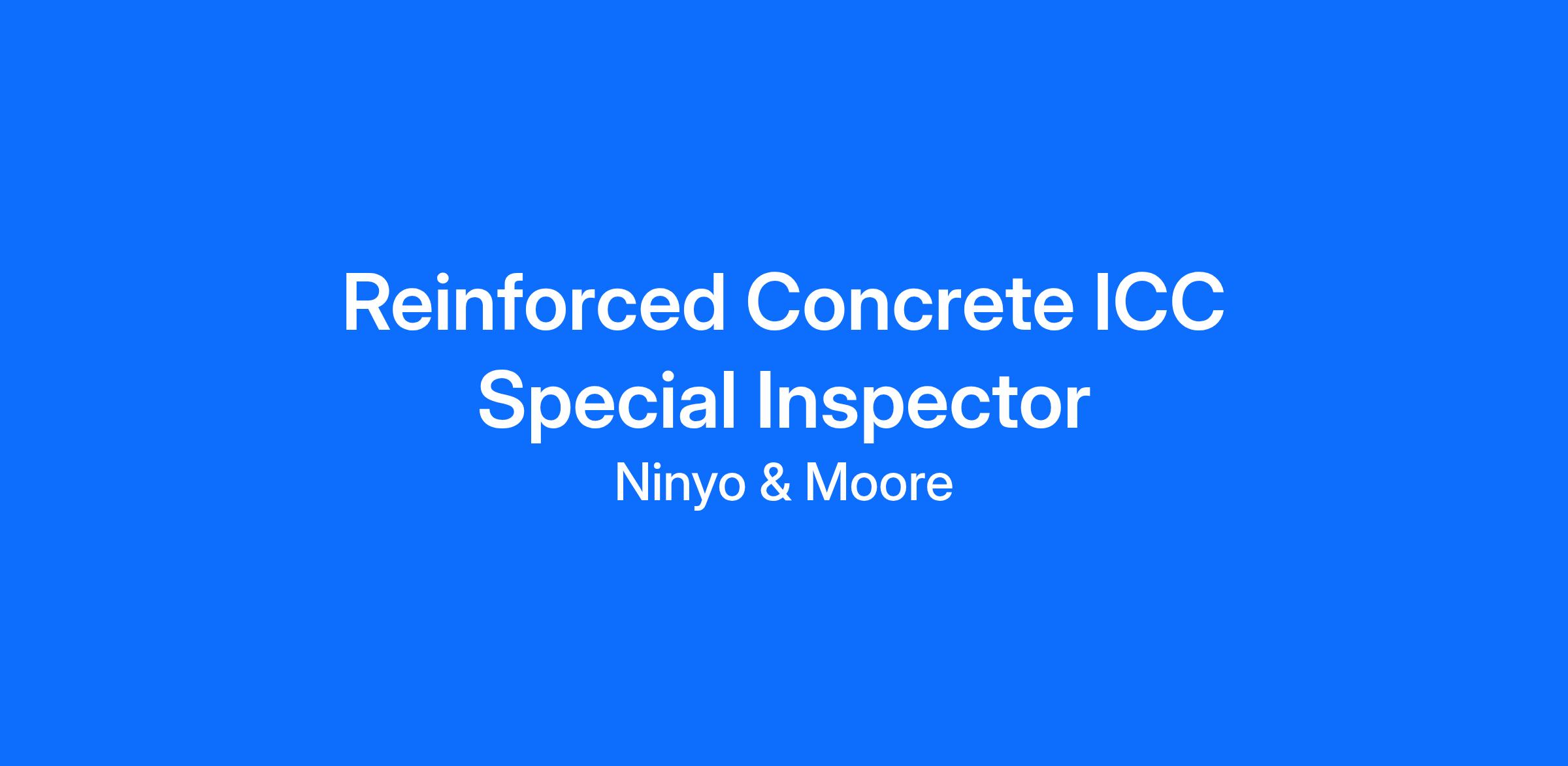 Education: ICC certifications for Reinforced Concrete, Pre-stressed Concrete, Structural Steel and Bolting, structural masonry, post tensioned reinforced concrete Special Inspector or a combination thereof REQUIRED.
