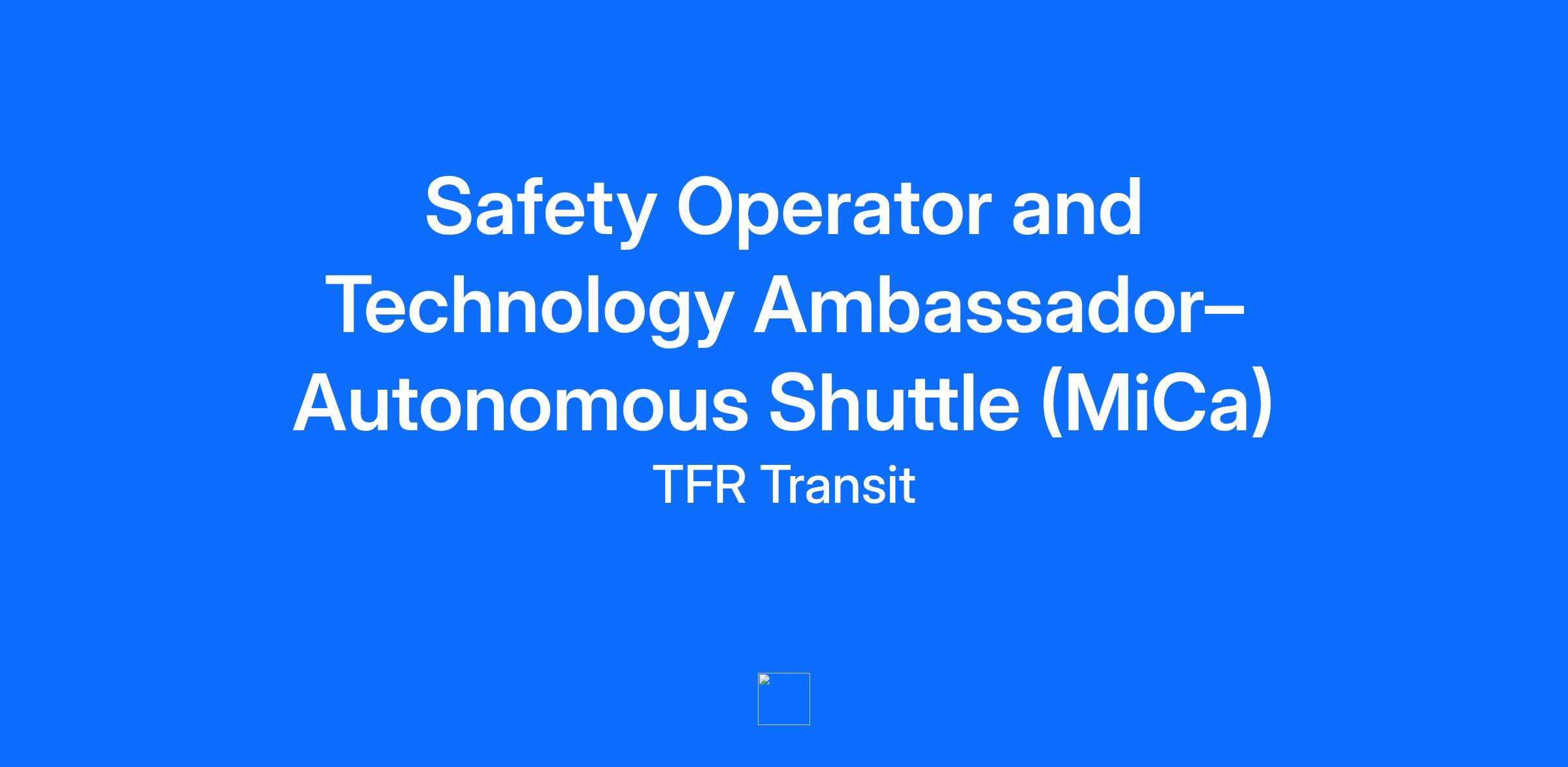 As a Safety Operator supporting the MiCa autonomous shuttle, you are present to satisfy regulatory and safety requirements while the vehicle operates autonomously. Your primary responsibility is to monitor vehicle behavior, the surrounding environment, and passenger safety, and to intervene using a handheld controller interface (similar to a video game controller) only when absolutely necessary.